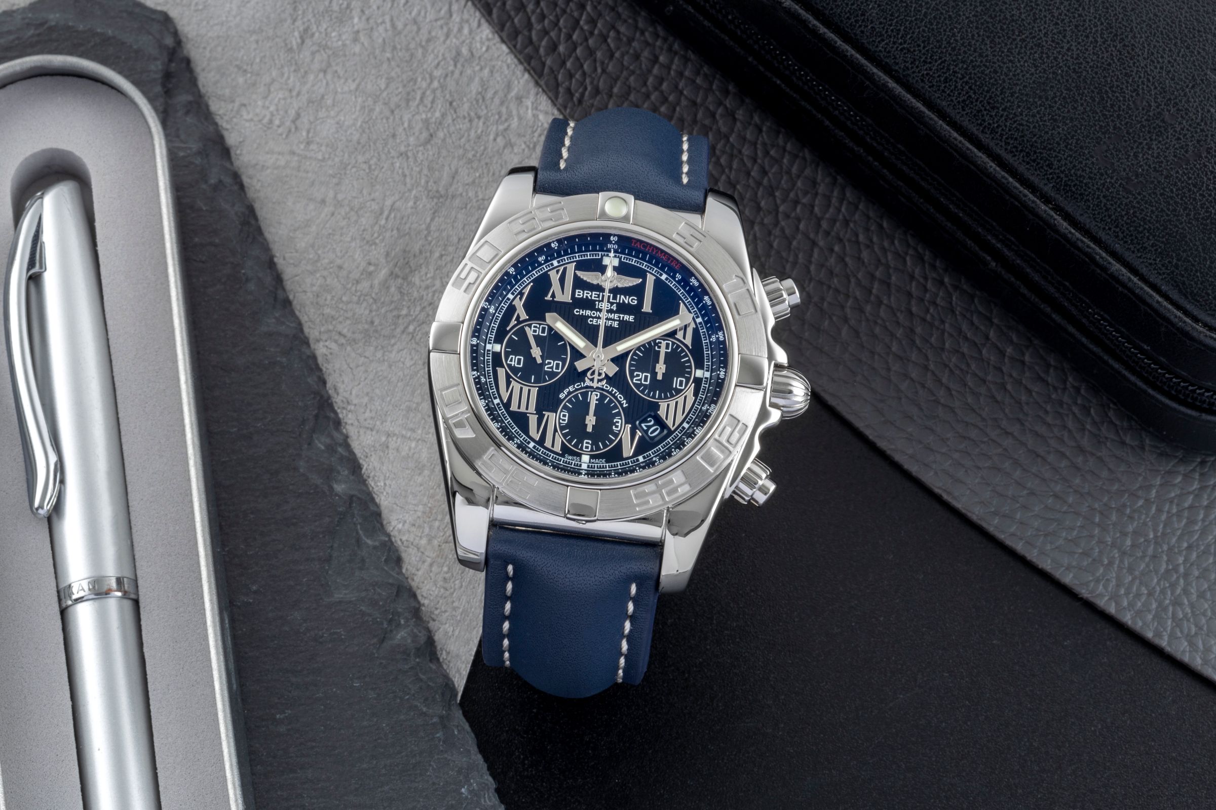 Alternative title: Breitling AB0110 Chronomat 44; Breitling Chronomat 44 Chronograph Black Dial Edelstahl Automatik Ref. AB0110 [2506640]