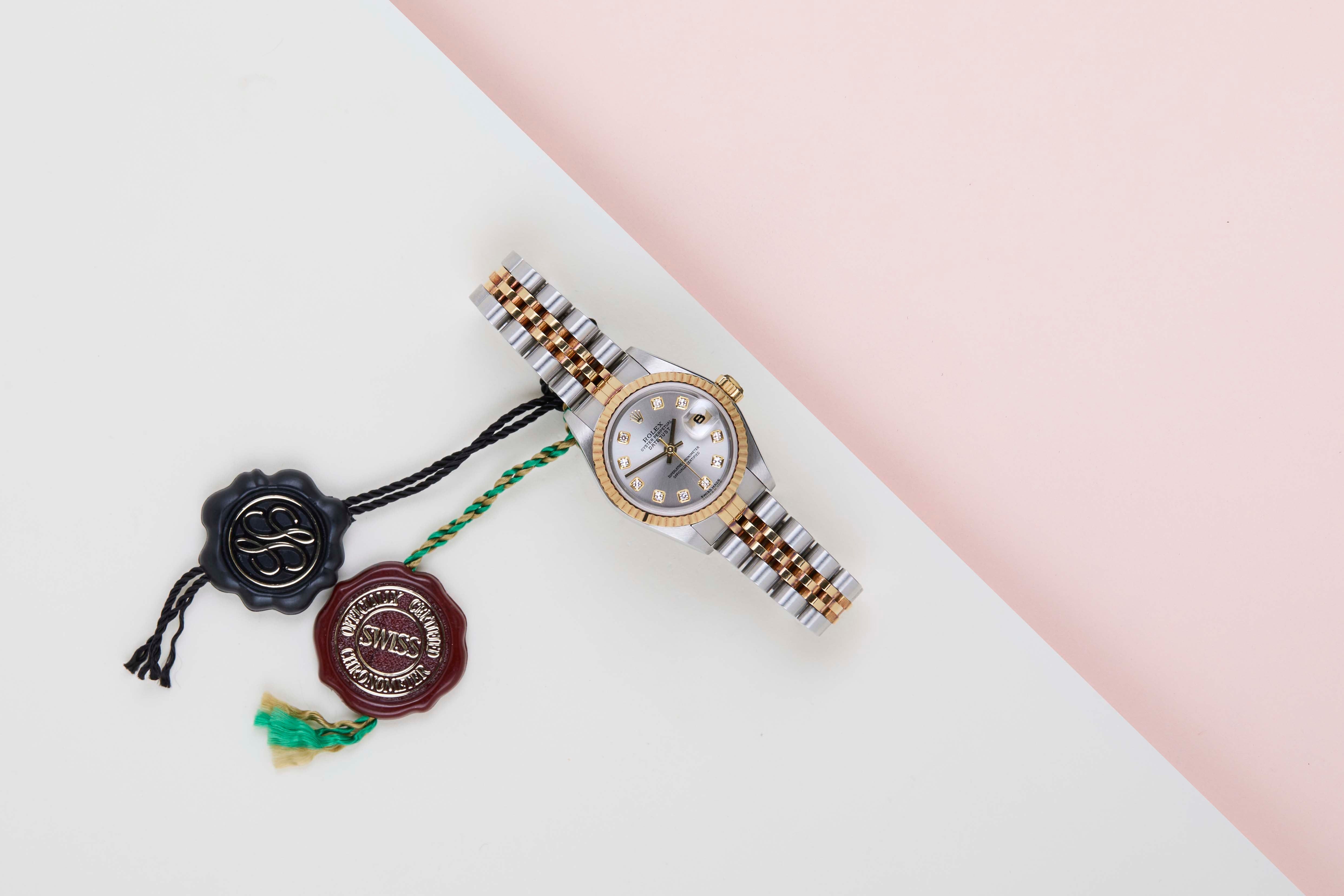 Rolex ha introdotto l'originale Datejust nel 1945 per celebrare il 40° anniversario dell'azienda. Grazie al suo enorme successo, Rolex ha lanciato la prima Lady-Datejust nel 1957. Questo Rolex Datejust 'Quadrante Argento con Diamanti - Bracciale Jubilee' è stato venduto per la prima volta a maggio 2004. Questo Datejust è realizzato in una combinazione di oro giallo 18k e acciaio inossidabile ed è dotato di un bracciale Jubilee. È dotato di un bellissimo 'Quadrante Argento con Diamanti'. Questo Rolex Datejust è in condizioni Mint e viene fornito con la scatola e i documenti originali Rolex. Inoltre, l'orologio ha un anno di garanzia Steiner.