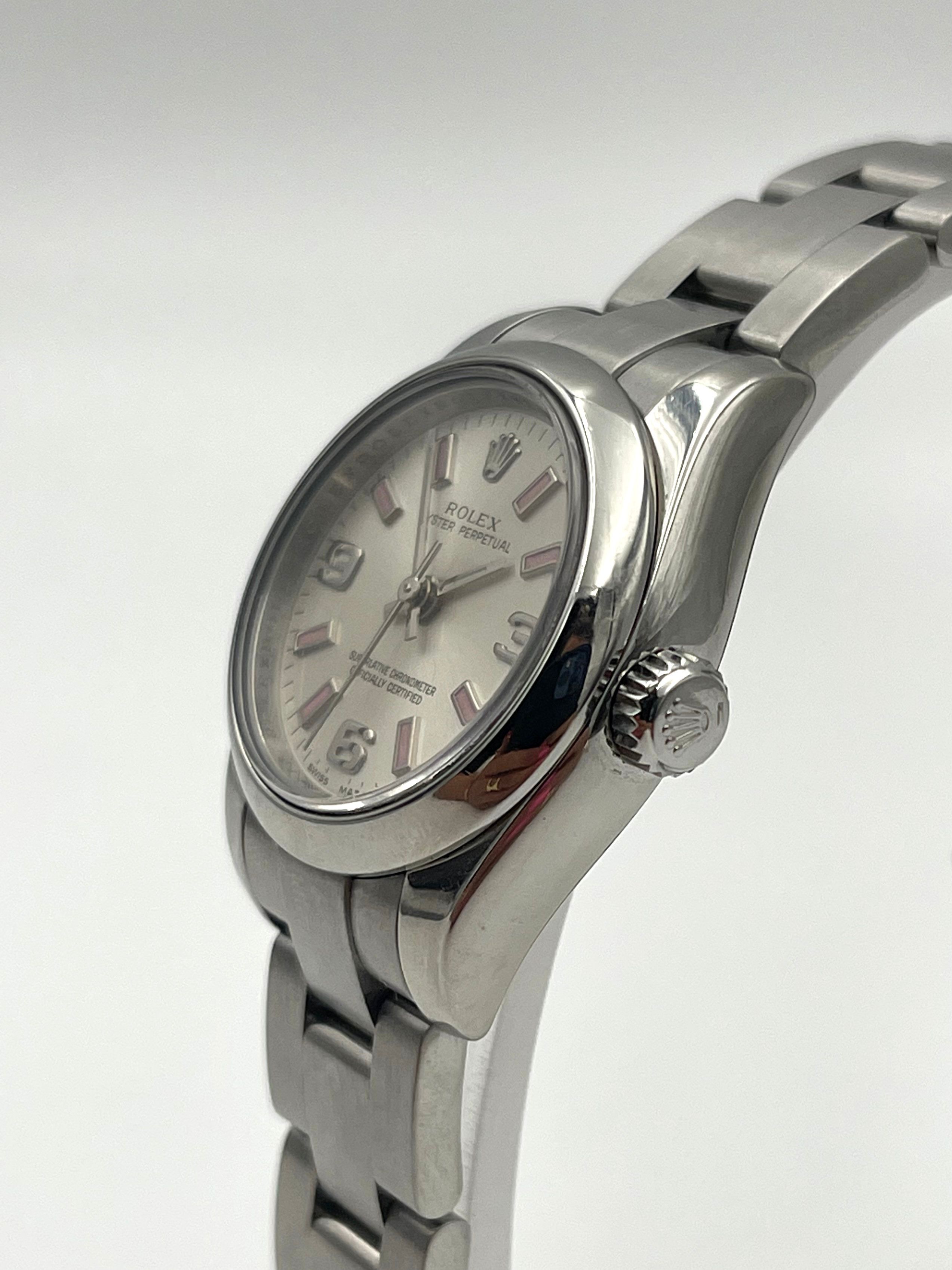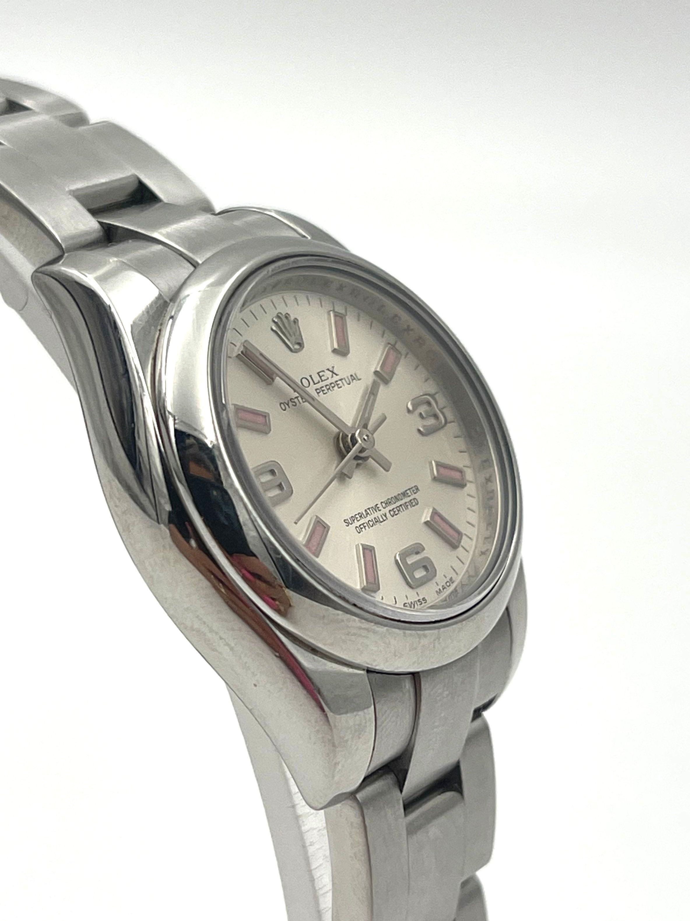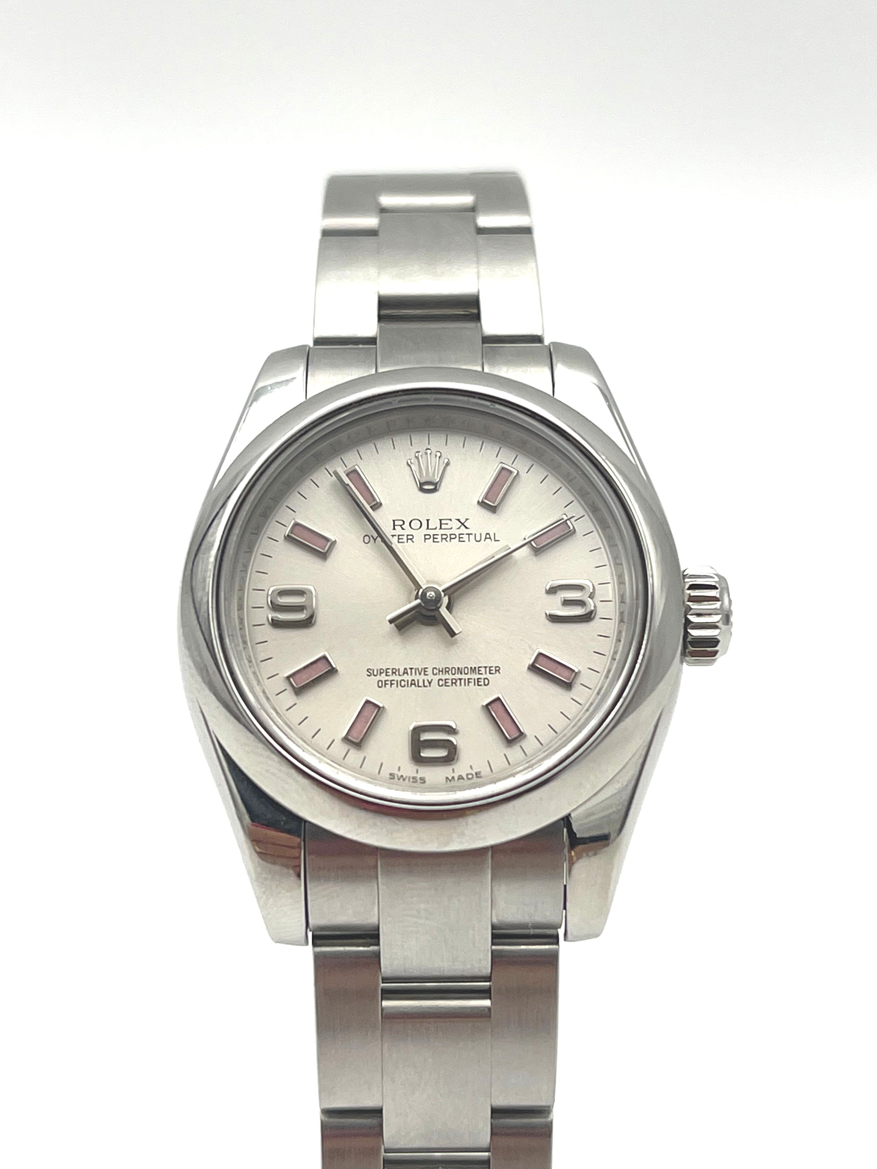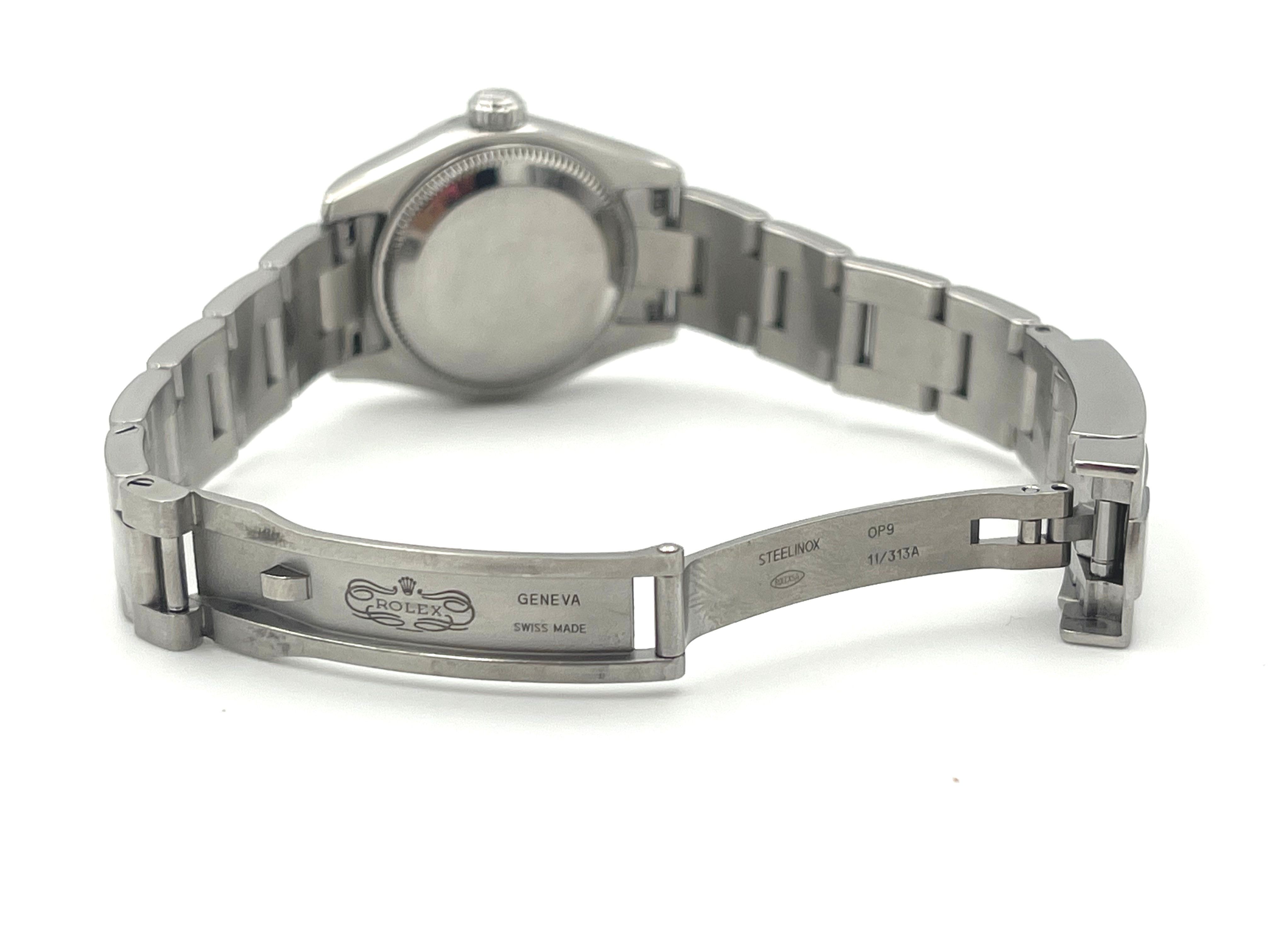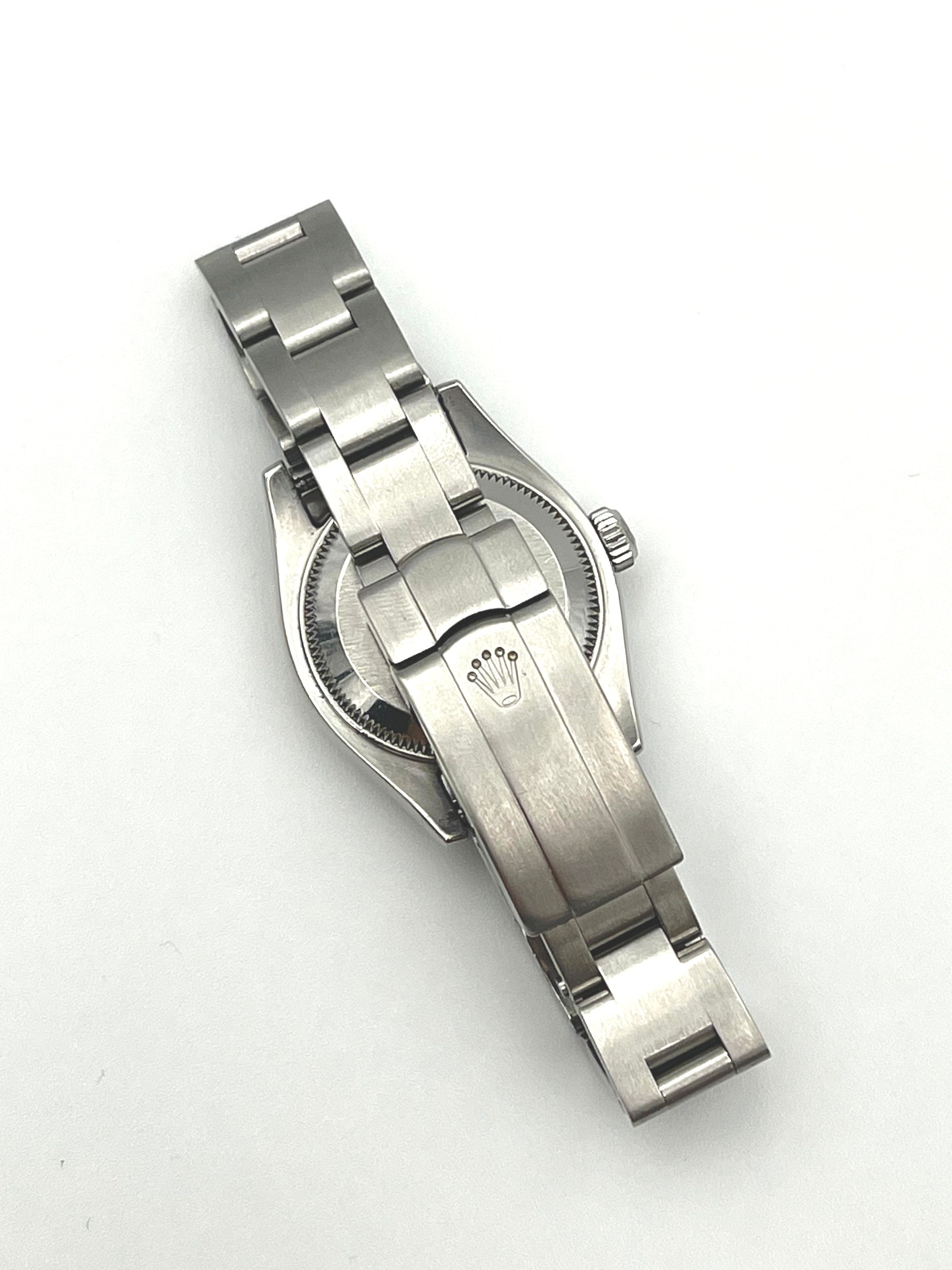 The iconic Oyster Perpetual with an updated dial released in 2007 unveiling the next generation of 26mm OP dials. A perfect watch for ladies wrists that can be both sporty and dressy !