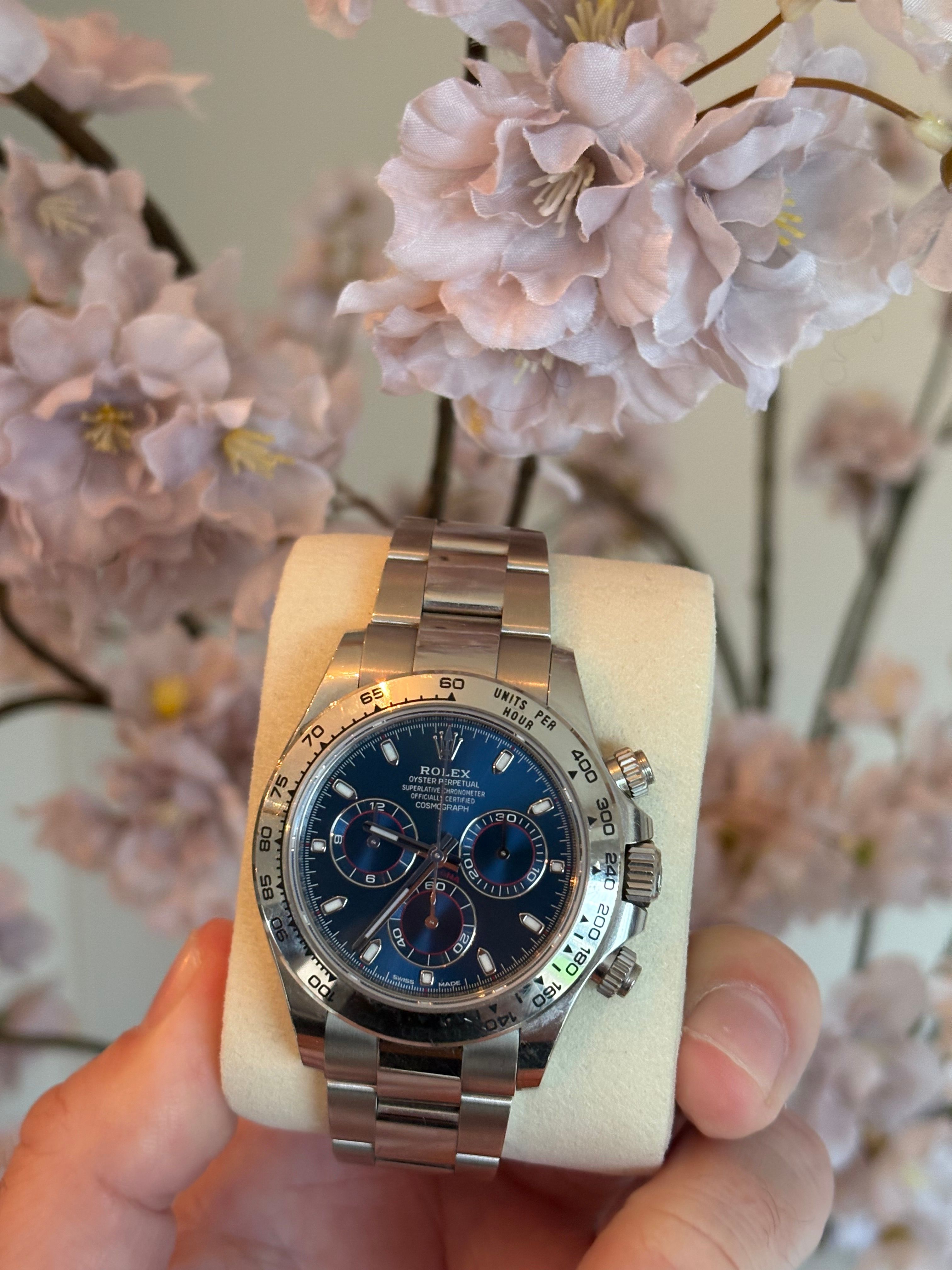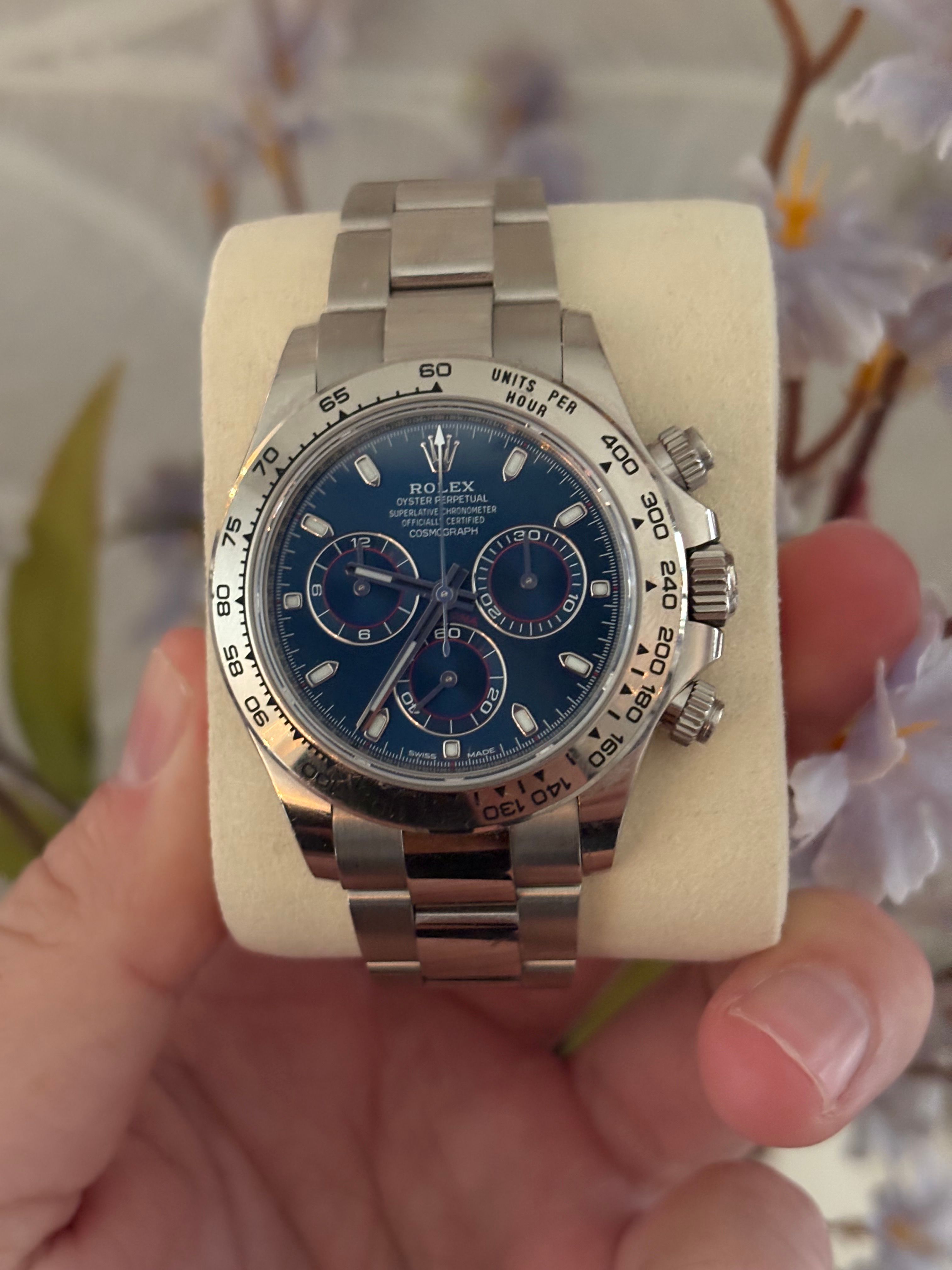 Rolex Daytona in whitegoldWith a blue Dial Great combination