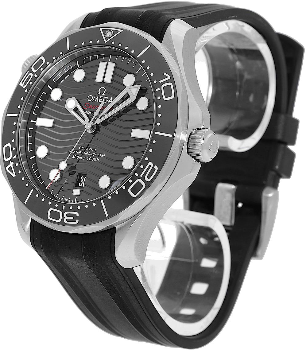 Omega Seamaster Diver 300M Co-Axial Master Chronometer, Riferimento: 210.30.42.20.01.001, Genere: Maschile, Dimensione: 41mm, Colore del quadrante: Nero, Materiale del cinturino: Gomma, Movimento: Automatico, Condizioni: Indossato in precedenza con alcuni segni di utilizzo. Il movimento è impeccabile e la cassa è stata pulita. Orologio testato per garantire la piena funzionalità. Un'ispezione da parte dei nostri orologiai certificati garantisce la sua autenticità., Documenti: Documenti originali, Certificato CHRONEXT