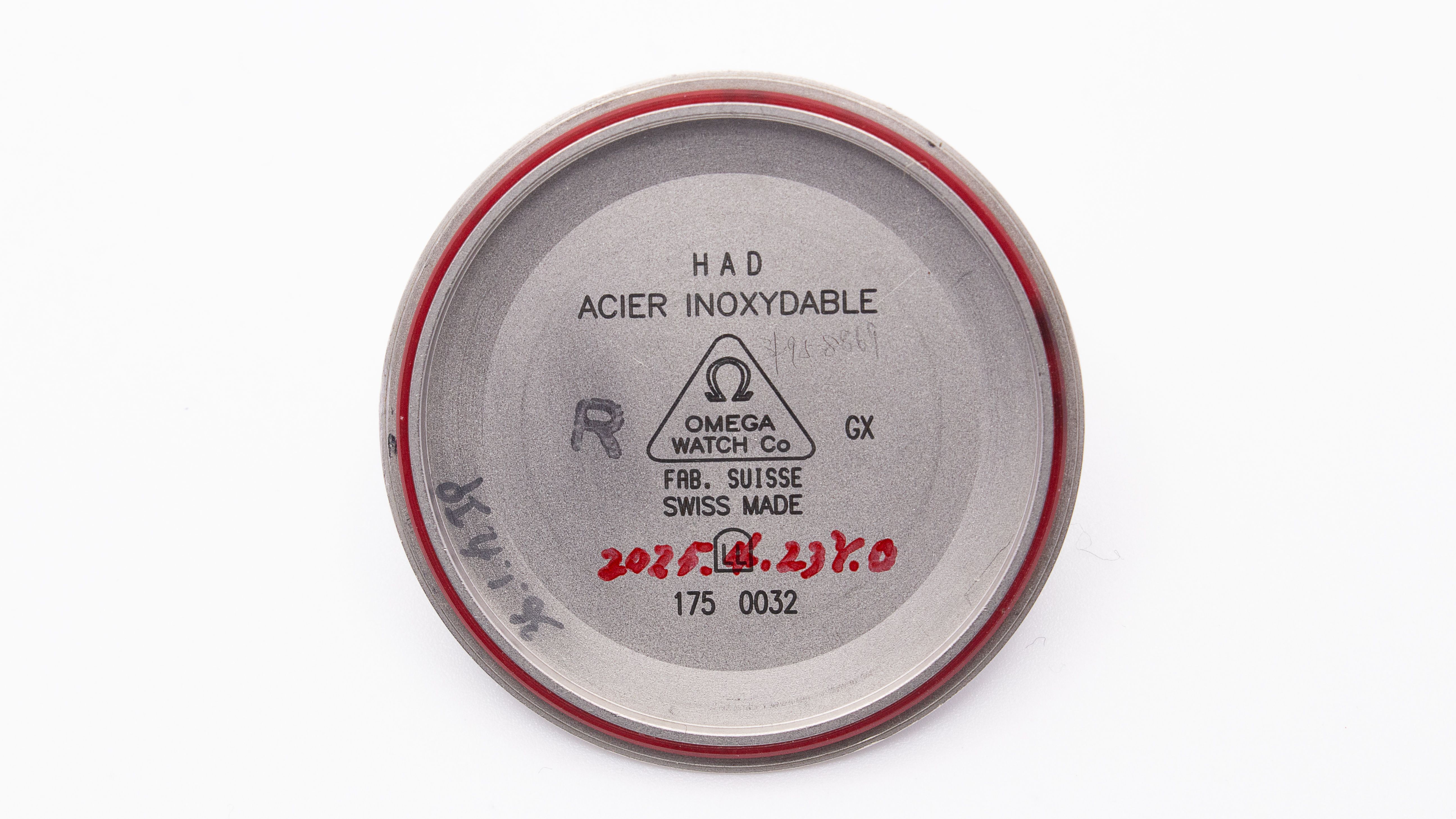 Angetrieben wird die Uhr vom automatischen Omega-Kaliber 1143, das mit einer Gangabweichung von ca. +3 Sekunden pro Tag sowie einer sehr starken Amplitude von rund 299 Grad perfekte Gangwerte liefert. Ein Servicevermerk vom 23.04.2025 ist im Gehäusedeckel dokumentiert und wird durch die ausgezeichneten Messwerte bestätigt.