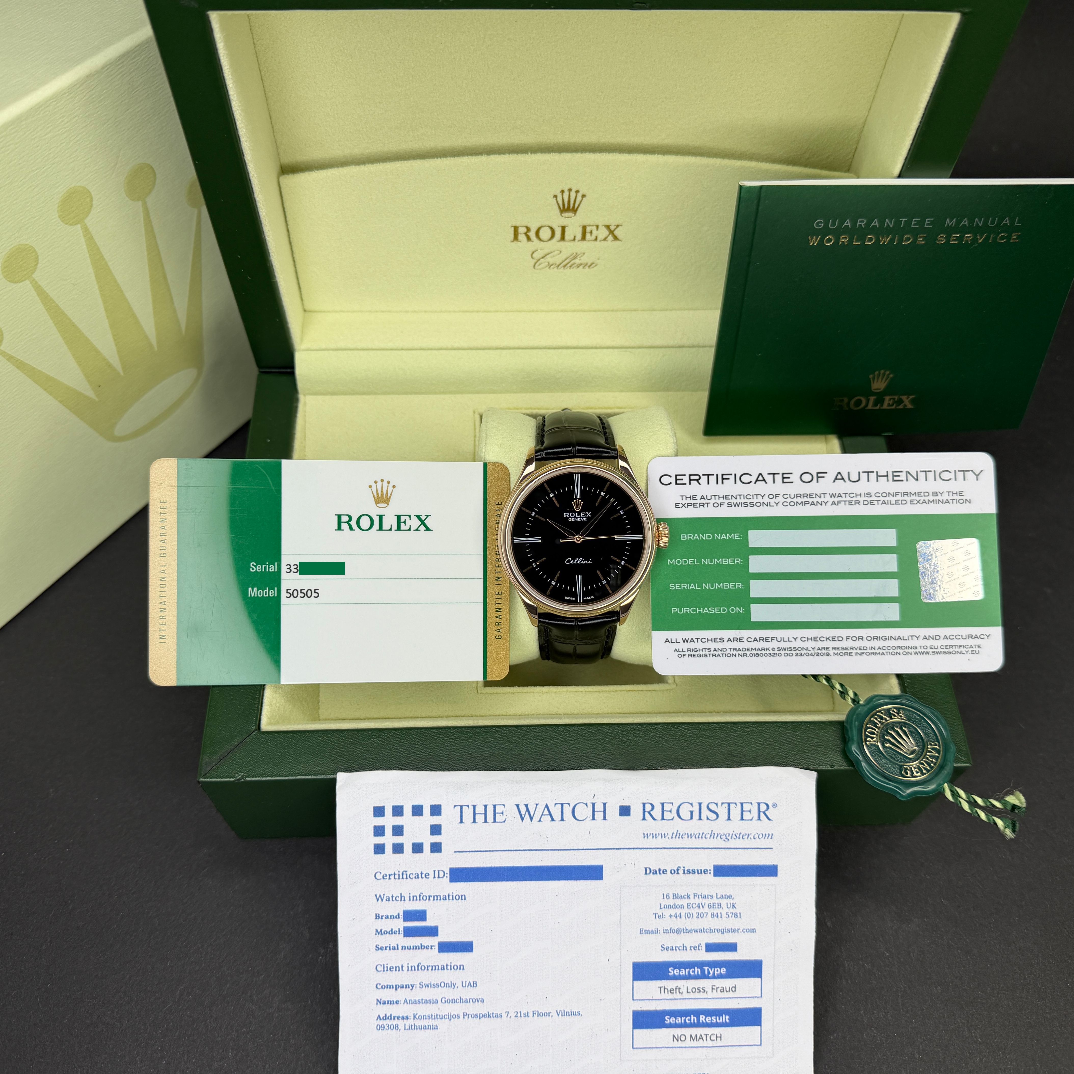• Un Certificato di Ricerca The Watch Register, entrambi legalmente riconosciuti come prova di diligenza.