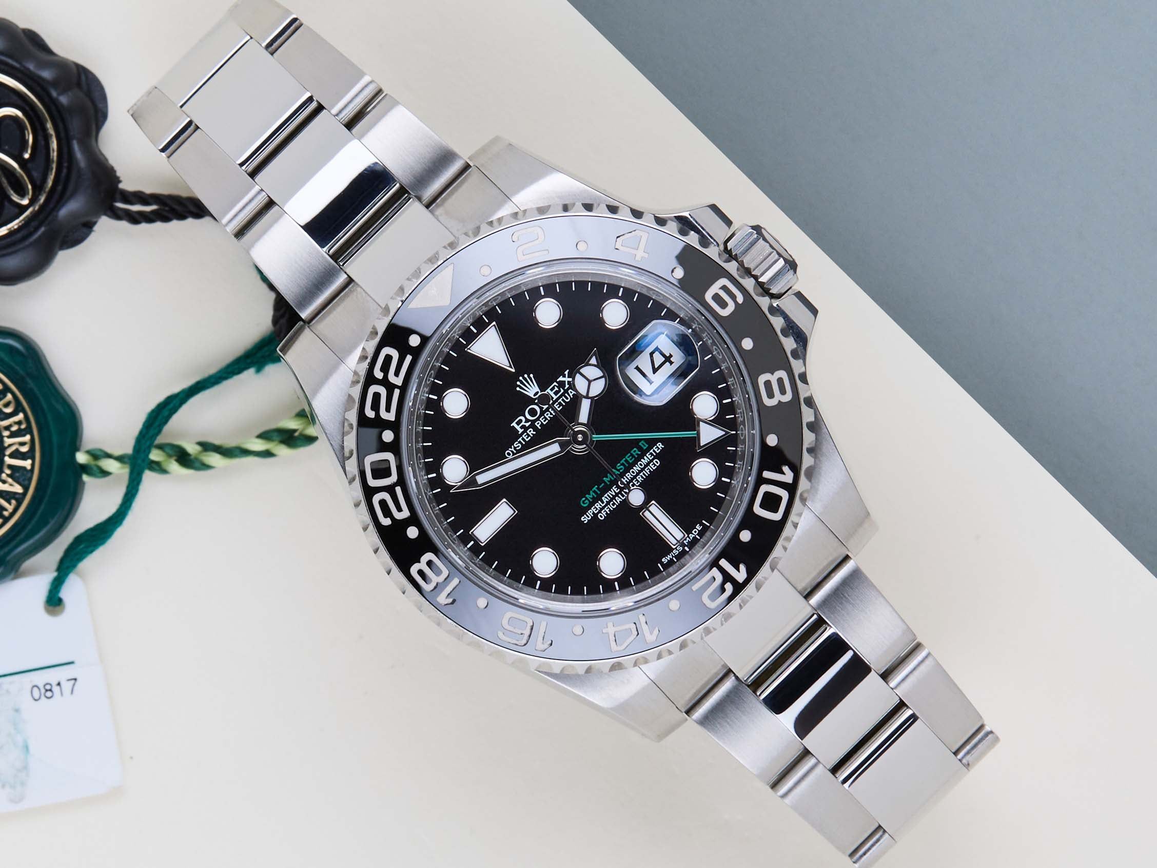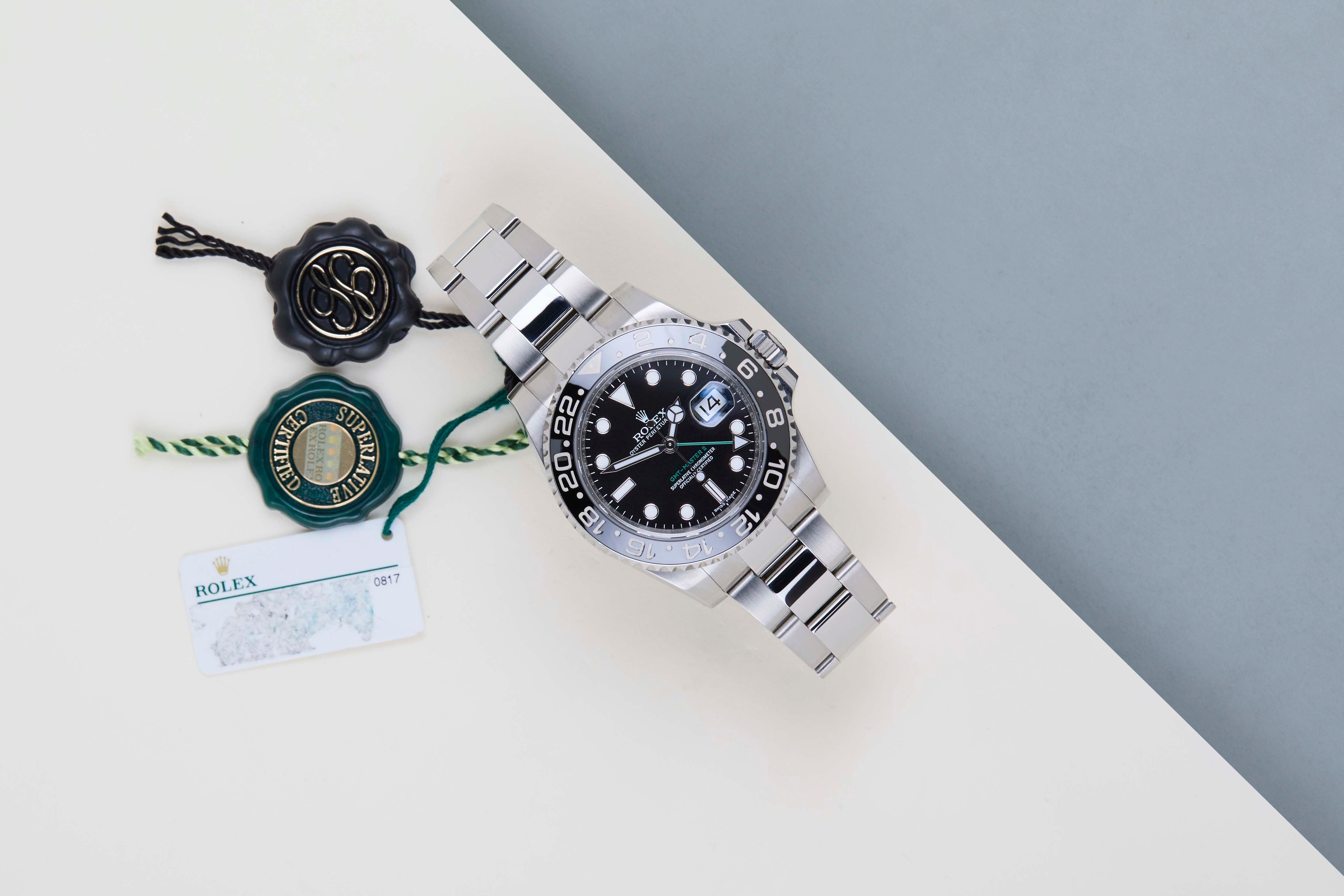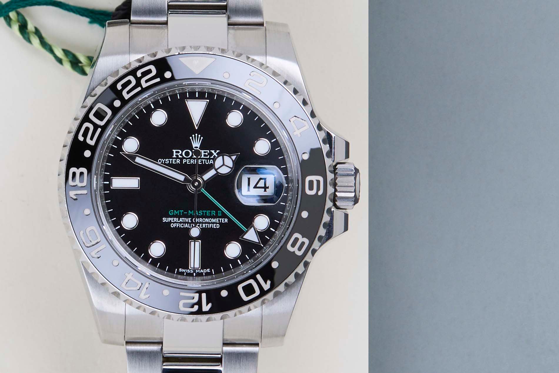Il riferimento 116710 è la prima generazione del GMT-Master II con una lunetta in ceramica. Il materiale utilizzato per realizzare questa lunetta si chiama 'Cerachrom', sviluppato interamente internamente da Rolex per essere altamente resistente ai graffi.