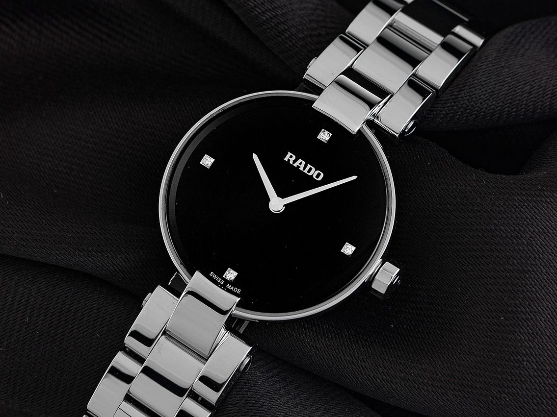 Cassa in acciaio inox lucido, diametro della cassa senza corona 26,5mm, altezza della cassa 6,8mm. Bracciale in acciaio inox lucido, chiusura pieghevole a doppia sicurezza nascosta in acciaio inox con logo del produttore. Quadrante nero con indici in diamante applicati e lancette in acciaio. Movimento al quarzo, calibro 280.002 con 5 pietre preziose. Indicazione di ore e minuti tramite lancette centrali. Vetro zaffiro antigraffio. Corona con logo del produttore. Fondello in acciaio inox inciso. Peso dell'orologio incluso il bracciale 67g, lunghezza del bracciale incluso la cassa 180mm. Numero di riferimento: 01.963.3854.4.070, numero di cassa: 15738XXX, ID: KS175811001225H-2400, numero articolo: 10000083823. Con controllo del movimento, batteria nuova e completa ripristinazione esterna di dicembre 2025. Scatola originale Rado e documenti di garanzia di giugno 2020, oltre a descrizione ed estratto dal Watch Register di dicembre 2025, certificato The Watch Register / senza registrazione (database internazionale per orologi smarriti o rubati), Full Set. Super affare, quasi mai indossato. Come nuovo. Tempi di consegna immediati.
