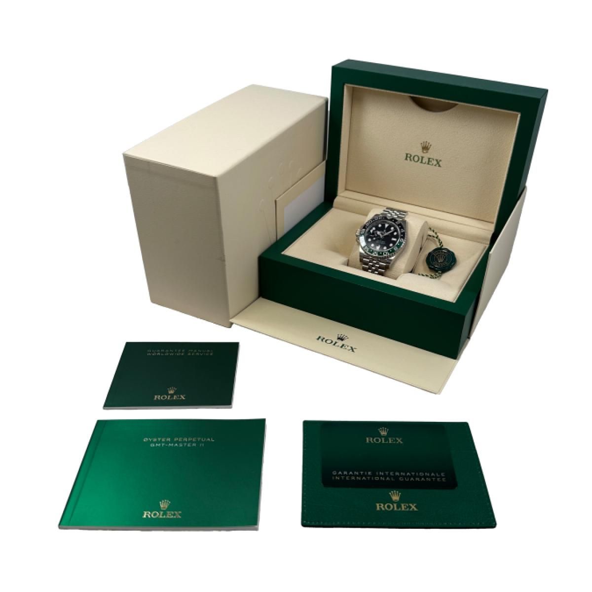Rolex GMT-Master II del 2023 con cassa in acciaio inossidabile da 40 mm e chiusura pieghevole. Questo orologio da uomo Rolex è in condizioni mai indossate.