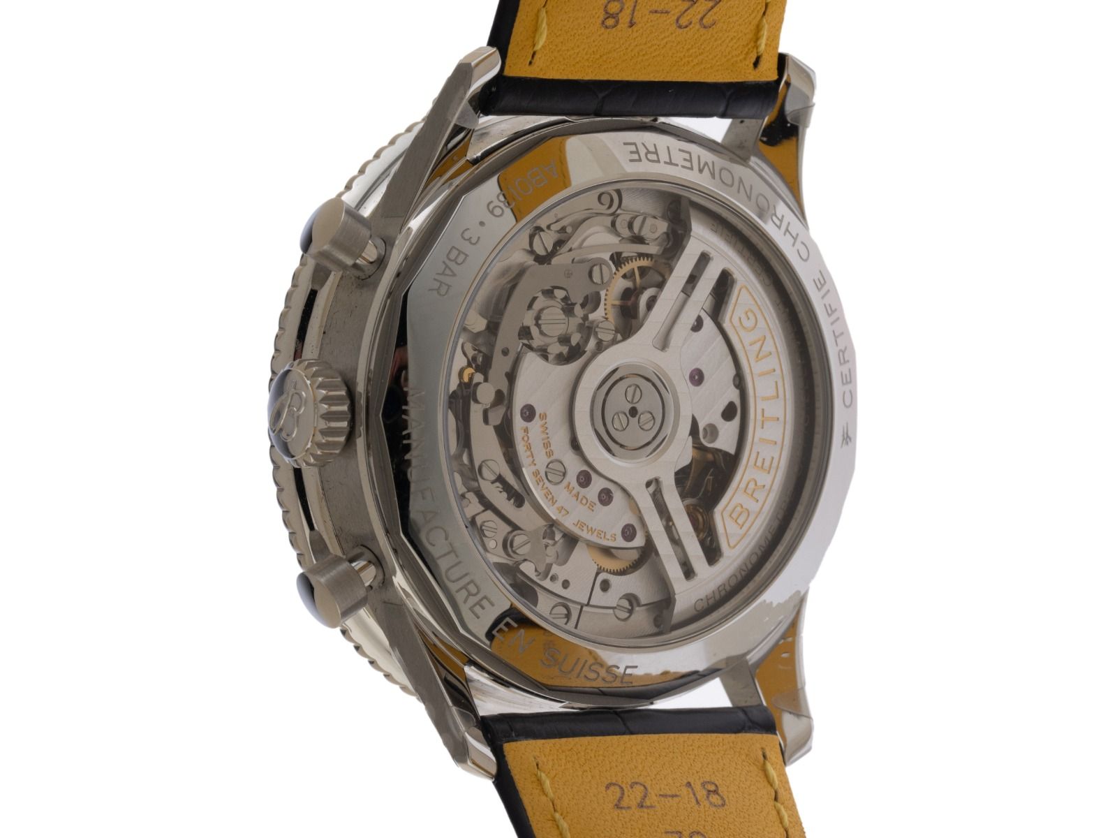 Breitling Navitimer B01 Acciaio Automatico Cronografo Cinturino in Pelle di Coccodrillo Chiusura Deployante