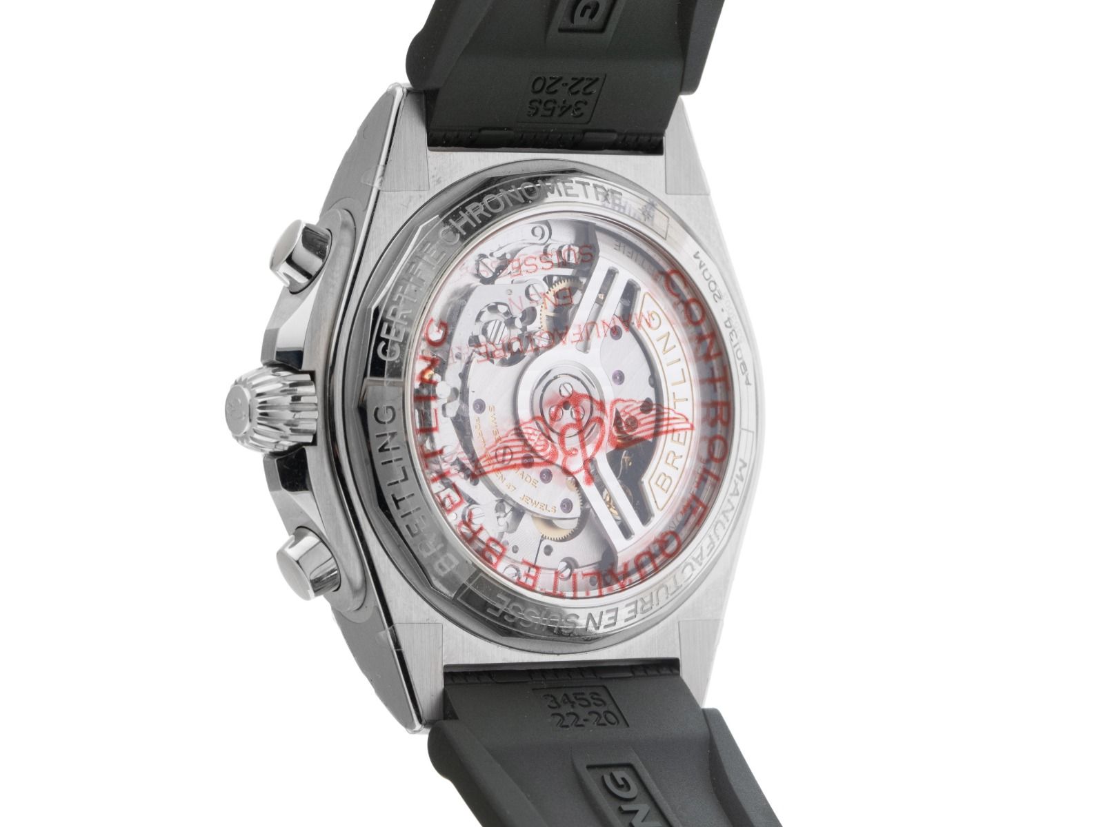 Cassa in acciaio lucido e satinato, diametro della cassa senza corona 42mm, altezza della cassa 15,1mm. Lunetta in acciaio con scala da 60 minuti e punto luminoso, unidirezionale con blocco. Cinturino in caucciù verde, larghezza delle anse 26mm, chiusura pieghevole di sicurezza in acciaio con logo del produttore. Quadrante verde con indici luminosi in acciaio applicati e lancette luminose in acciaio lucidato. Movimento automatico, cronografo, cronometro con certificato, calibro di manifattura Breitling B01 con 47 pietre preziose, riserva di carica di circa 70 ore. Indicazione di ore e minuti tramite lancette centrali, piccolo secondo con fermo per la regolazione precisa dell'ora a 9 ore, indicazione della data con regolazione rapida a 6 ore. Vetro zaffiro antigraffio, antiriflesso su entrambi i lati e bombato. Corona a cipolla avvitata con protezione laterale e logo del produttore. Fondello in acciaio avvitato e inciso con finestra in vetro zaffiro. Peso dell'orologio incluso il cinturino 145g. Impermeabile fino a 20 ATM. Numero di riferimento: AB0134101L2S1, ID: ST6102108001225H-9000, numero articolo: 10000084003. Scatola originale Breitling e documenti di garanzia del 2025, Full Set. Mai indossato. Tempi di consegna immediati.