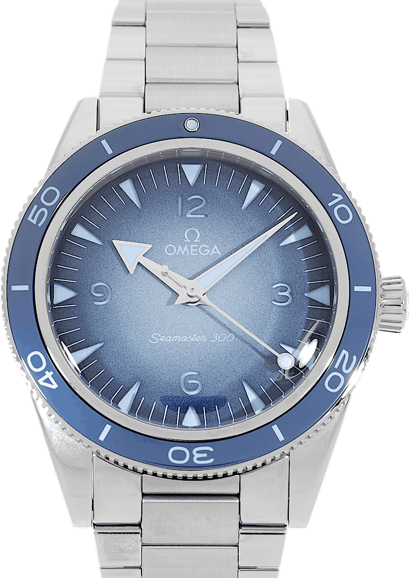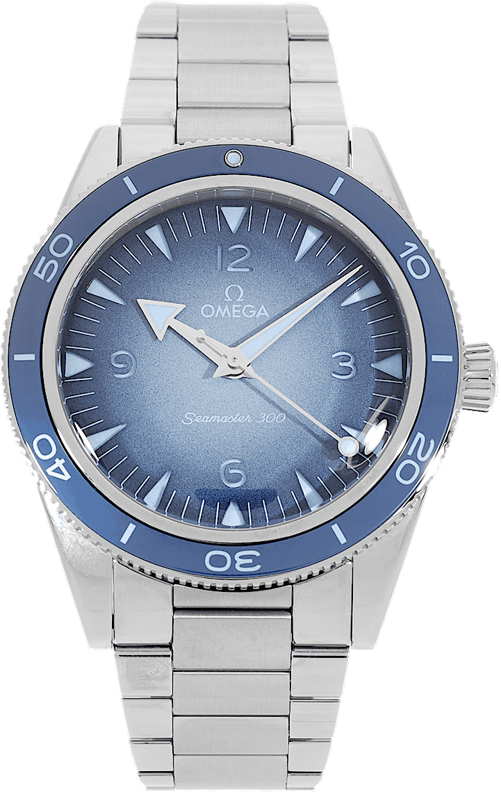 Omega Seamaster 300 Summer Blue, Reference: 234.30.41.21.03.002, Gender: Male, Size: 41mm, Dial color: Strap material: Stainless Steel, Movement: Automatic, Year: 2024, Condition: Previously worn with some signs of usage. The movement is flawless and the case has been cleaned. watch tested to ensure full functionality. An inspection by our certified watchmakers guarantees its authenticity., Documents: Original papers, CHRONEXT Certificate