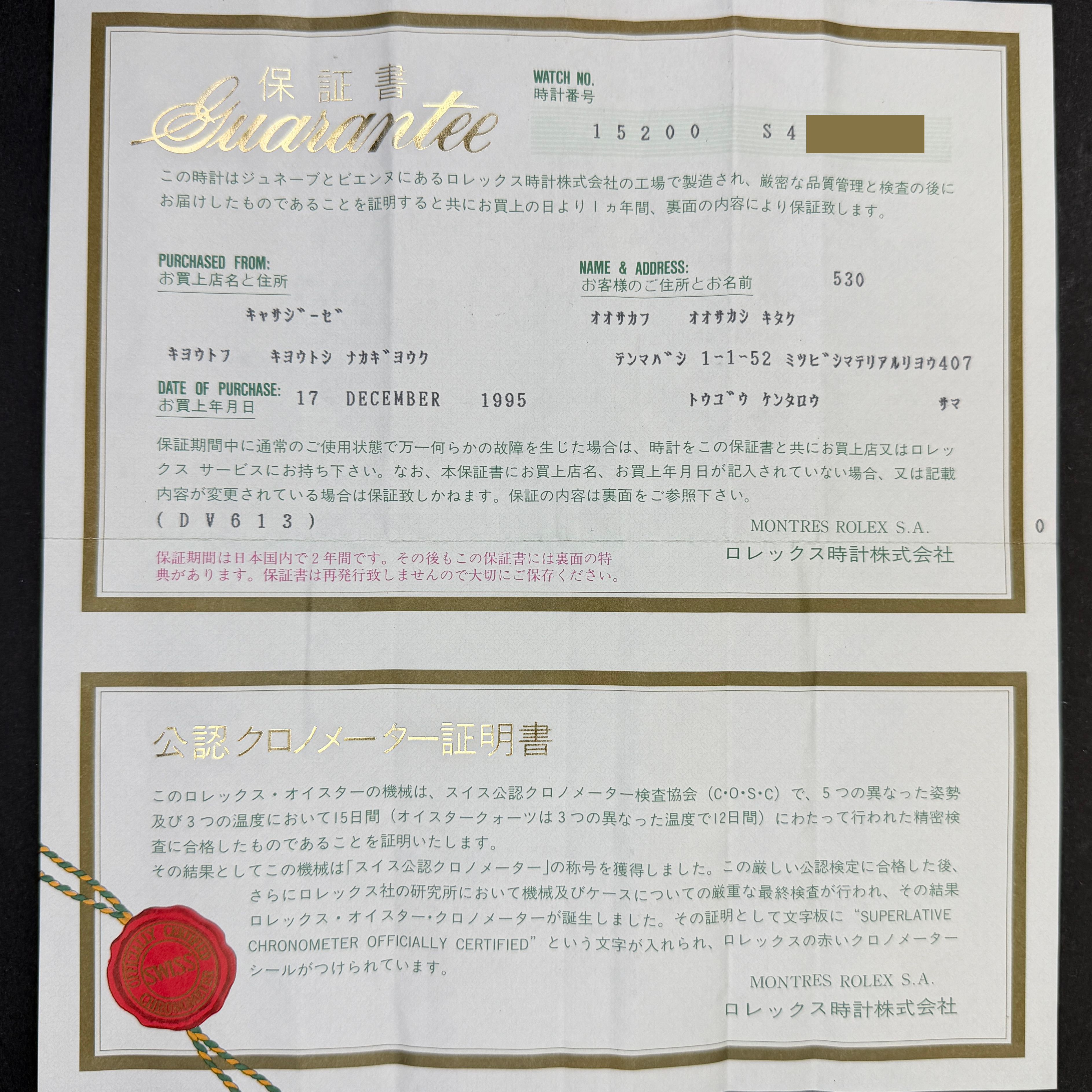 This Rolex Oyster Perpetual Date 15200 features a Blue dial and is crafted from stainless steel, with a production year of 1993.Case No: S40XXXX