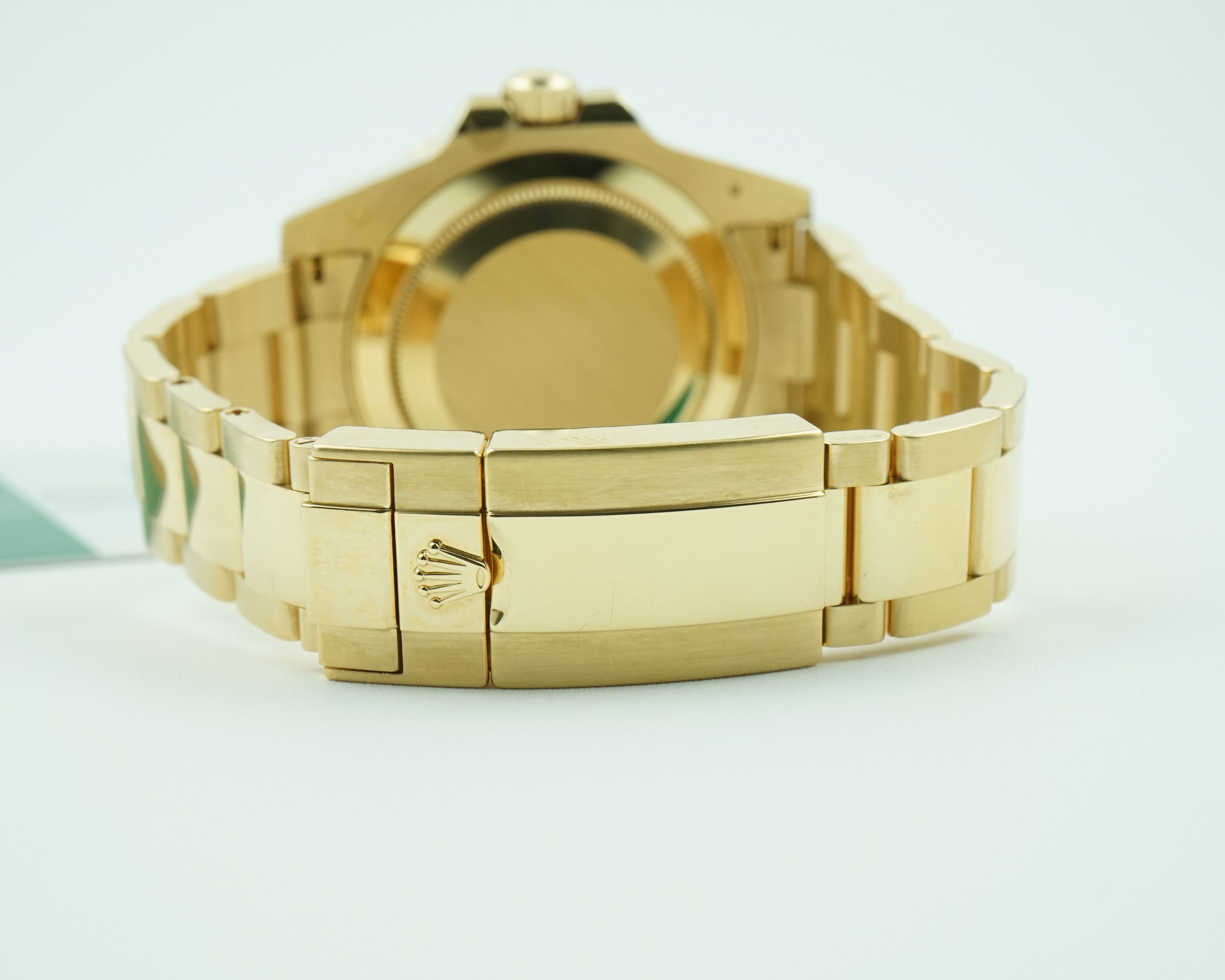 Questo modello iconico in oro giallo 18 carati colpisce per il suo design sportivo e lussuoso, la distintiva lunetta in ceramica Cerachrom nera e il quadrante nero profondo con indici luminescenti Chromalight, che si armonizzano perfettamente con la cassa Oyster.