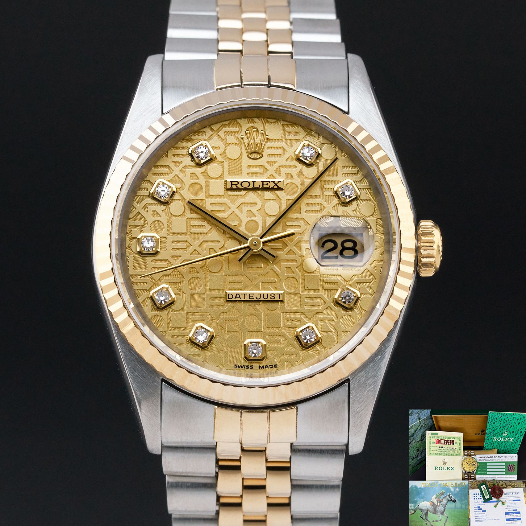 Rolex Datejust 36 Rolex Datejust, 16233, 36mm, 1995, Two-Tone, Champagne Jubilee Big Diamond dial, Fullset, 1y warranty