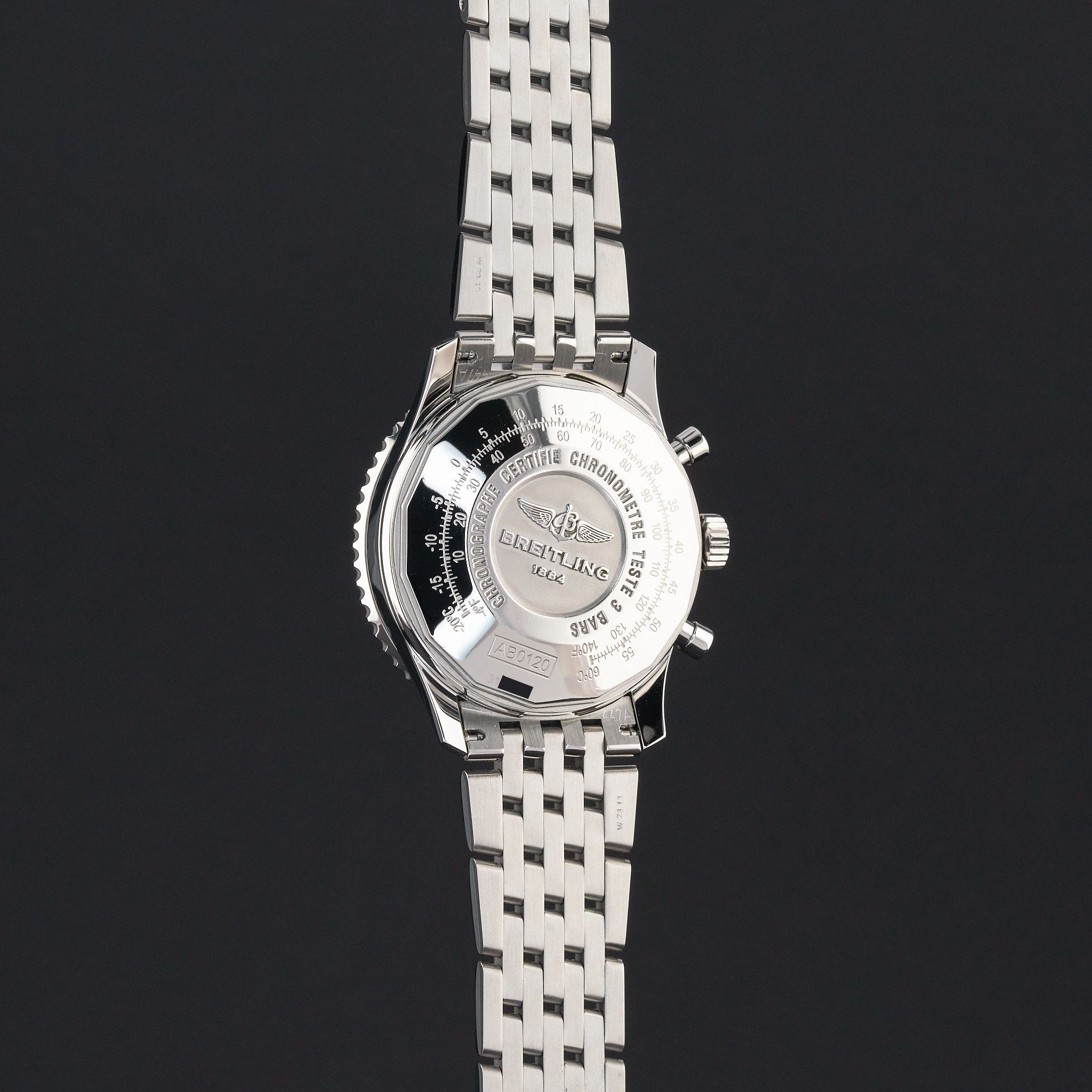 Questo Breitling Navitimer 01 AB0120 presenta un quadrante nero con numeri arabi ed è realizzato in acciaio inossidabile, con anno di produzione 2014.