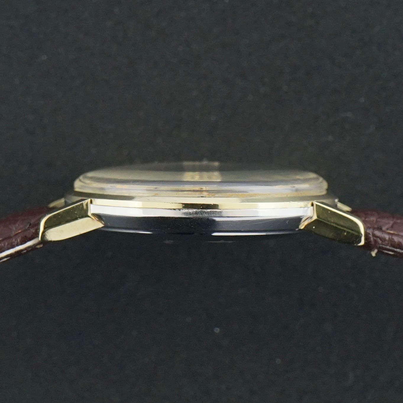 Vintage Omega Seamaster pre- De Ville from 1962. It features a gold-plated case and a white sunburst dial. The design matches the later Seamaster De Ville, but this earlier example does not yet display “De Ville” on the dial. The dial is in beautiful condition, with a crisp sunburst finish and very light patina speckles. Inside is the manual-wind caliber 610 movement, serviced in December 2025 and currently running and functioning excellently. The watch is paired with a simple brown calf feather strap. Overall condition is excellent, making this a refined and elegant dress watch.