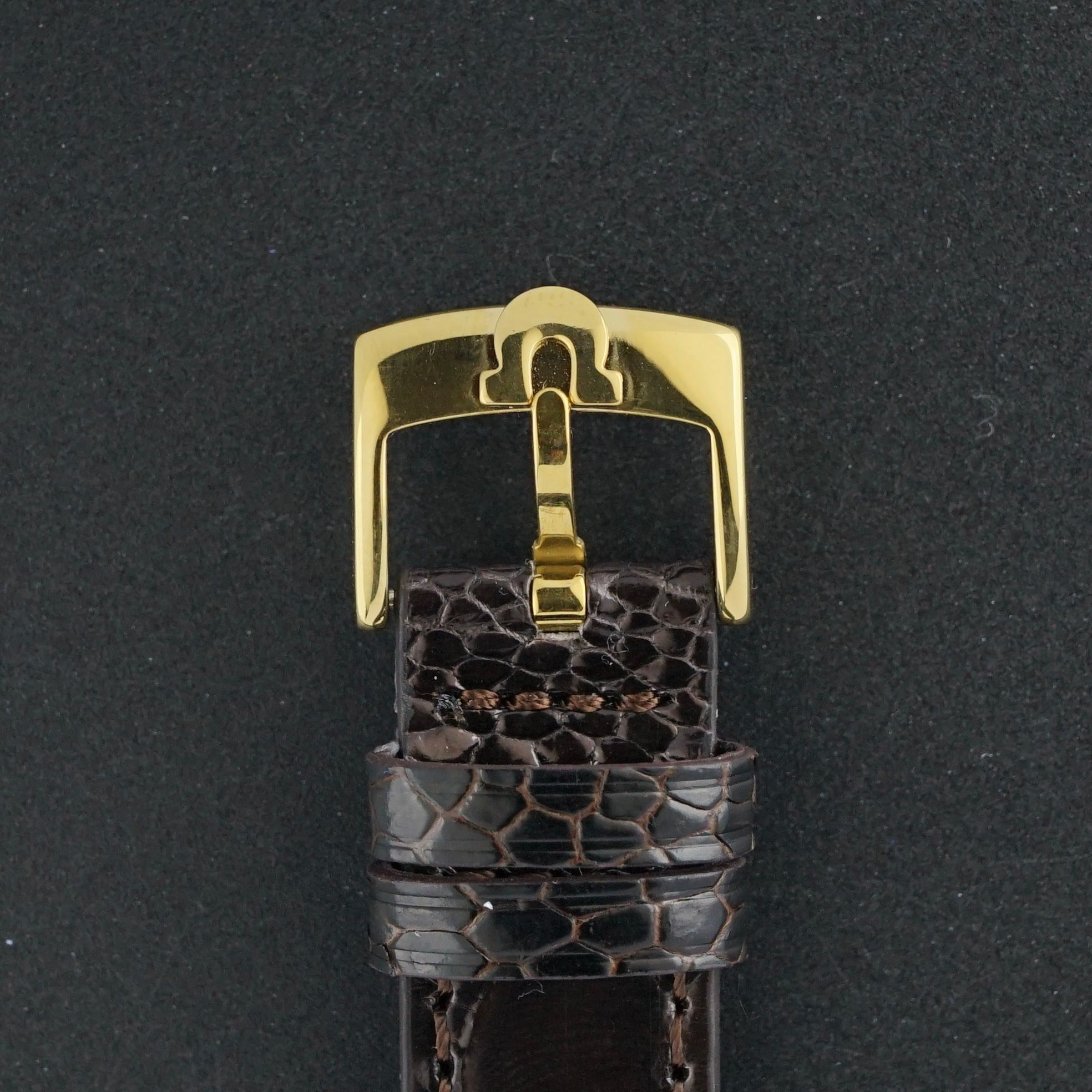 Strap: A grade III brown calf leather strap with a crocodile grain and light glossy finish. (Fits a 12 to 20cm wrist)