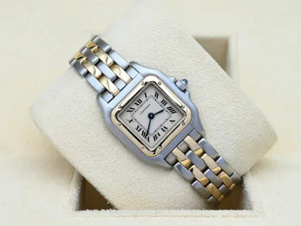 Cartier Panthere 166921 degli anni '90 in eccellenti condizioni, completa di scatola e documenti originali. Tutti i nostri orologi sono stati controllati a fondo dal nostro orologiaio e serviti quando necessario.