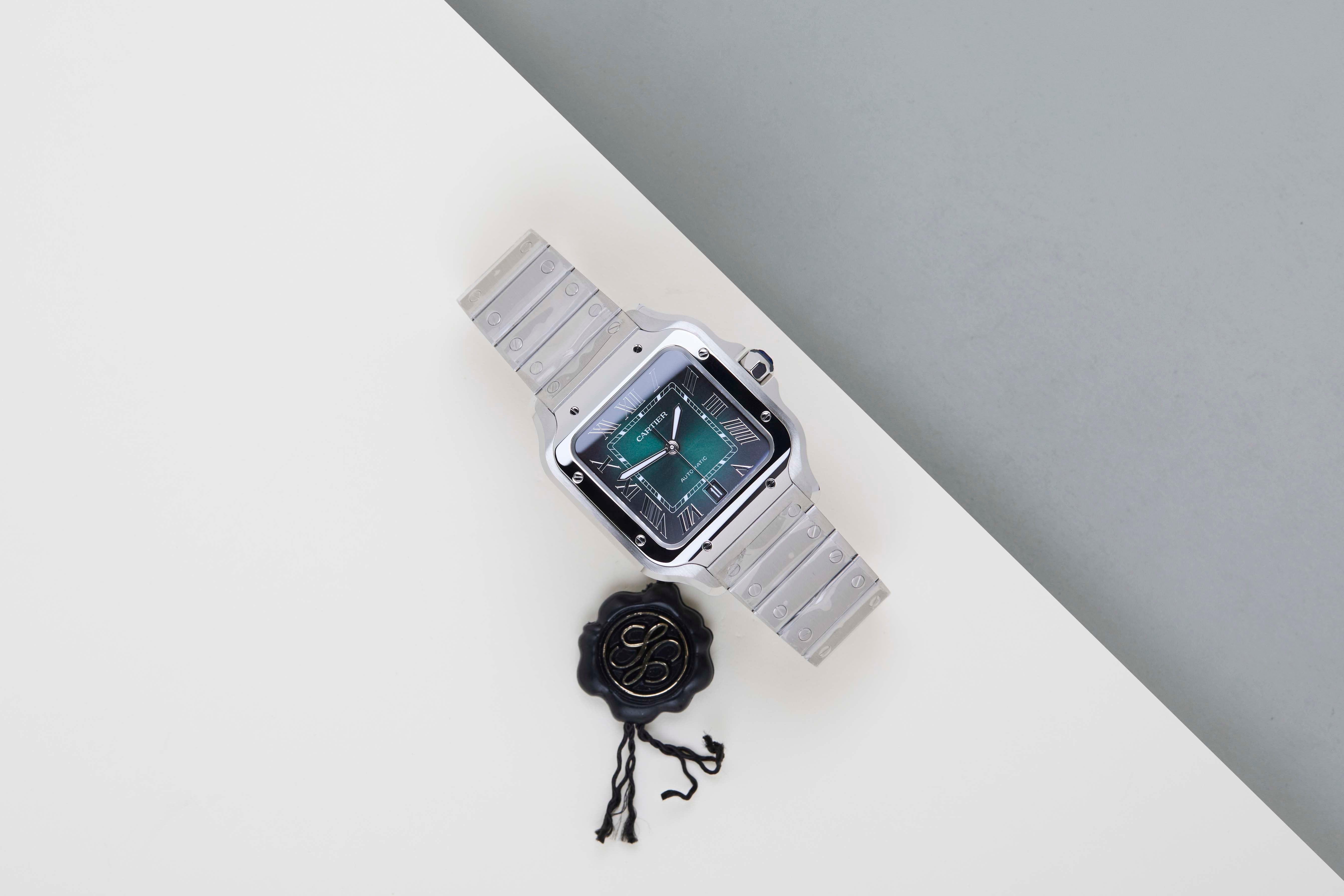 Nuovo e mai indossato | Set completo | Garanzia Cartier fino a dicembre 2033 | Inclusa nuova cinturino in pelle verde Cartier con fibbia pieghevole in acciaio