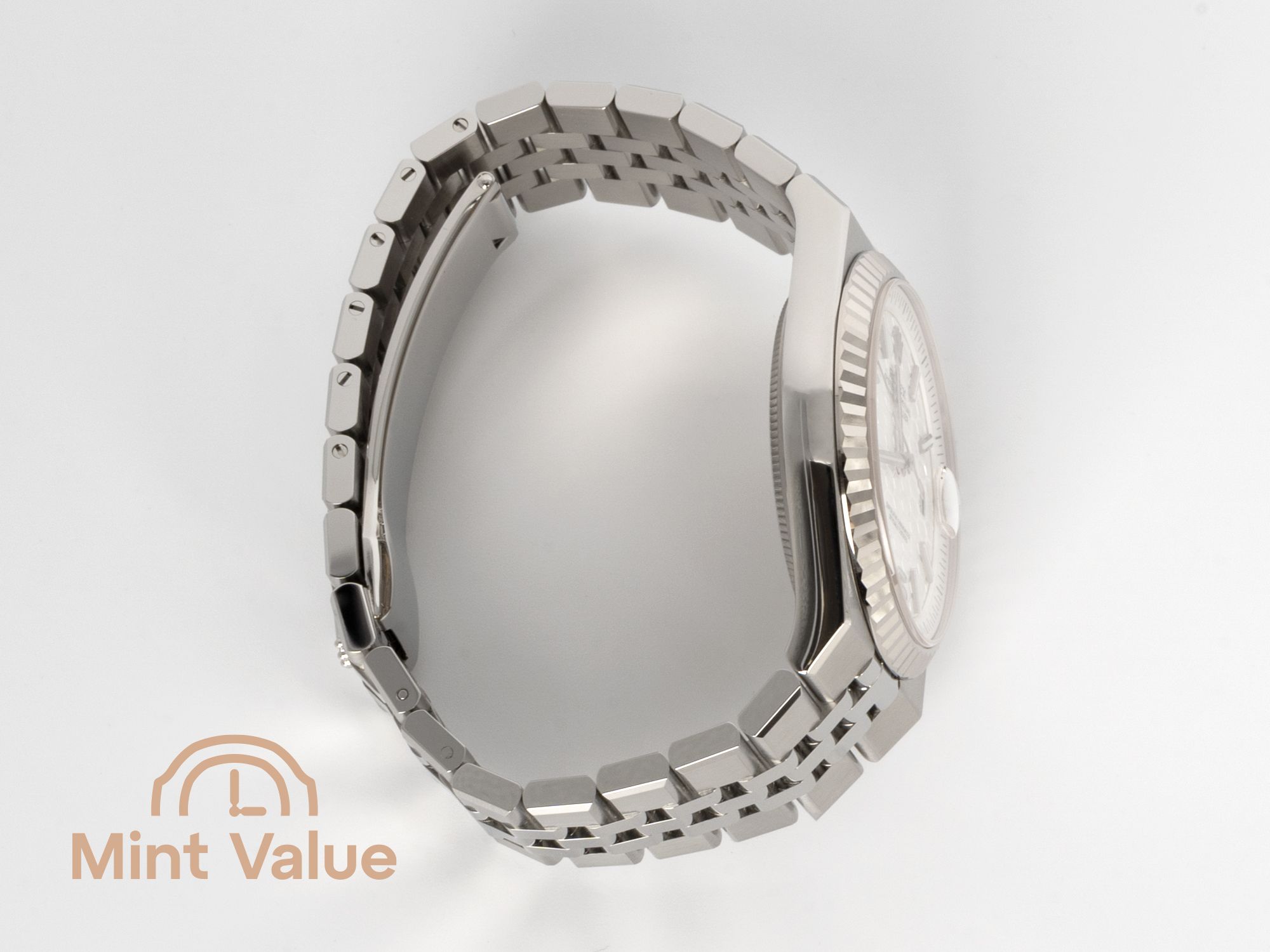 Precision-cut from 18 kt white gold, the fluted bezel adds classic Rolex DNA to an otherwise contemporary design, creating a perfect balance of heritage and innovation.