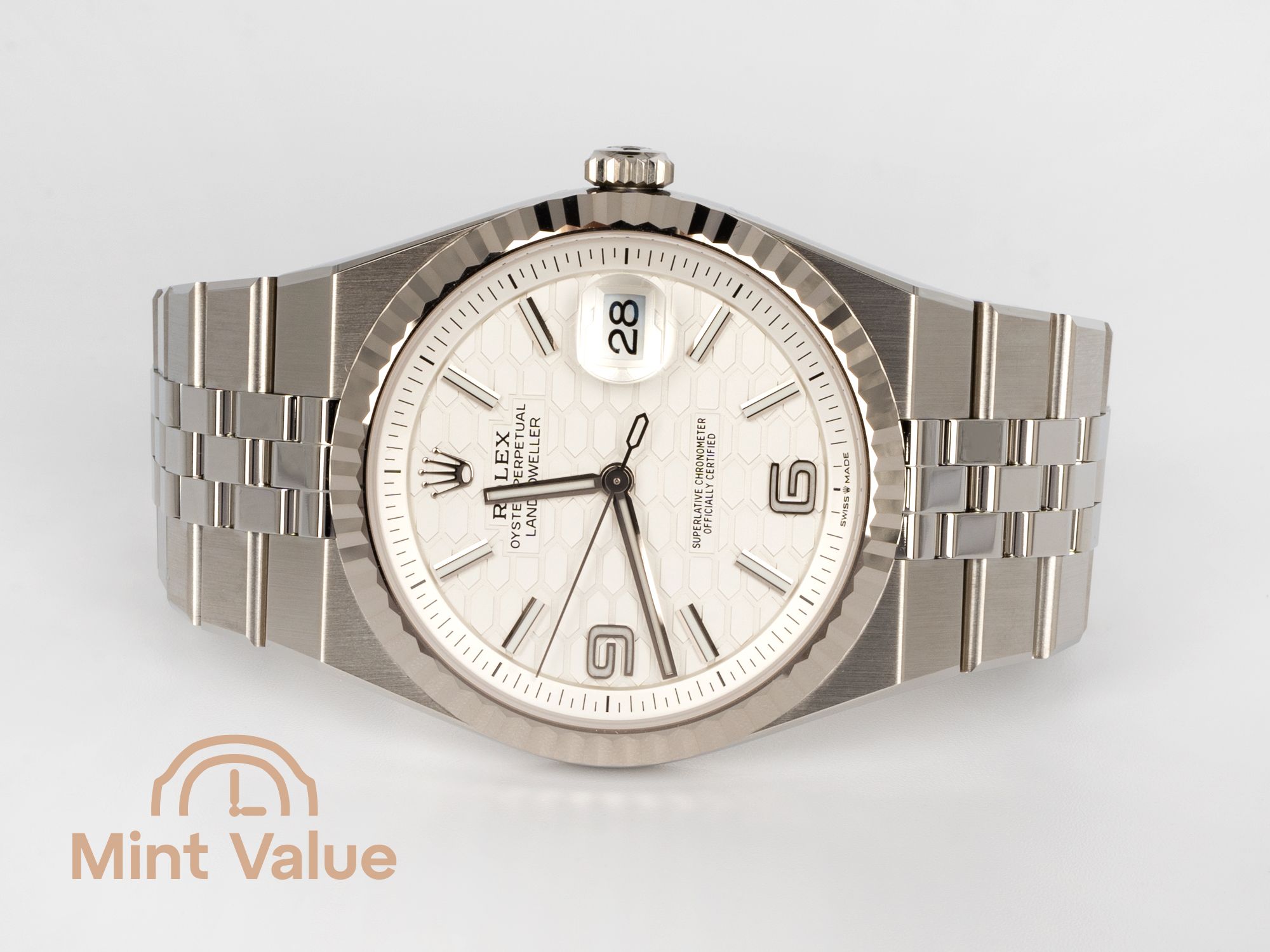 Crafted in Oystersteel with a white gold fluted bezel, the watch features a distinctive white honeycomb dial, adding depth, texture, and a contemporary edge. The Land-Dweller is not a reinterpretation of the past — it is Rolex looking decisively forward.