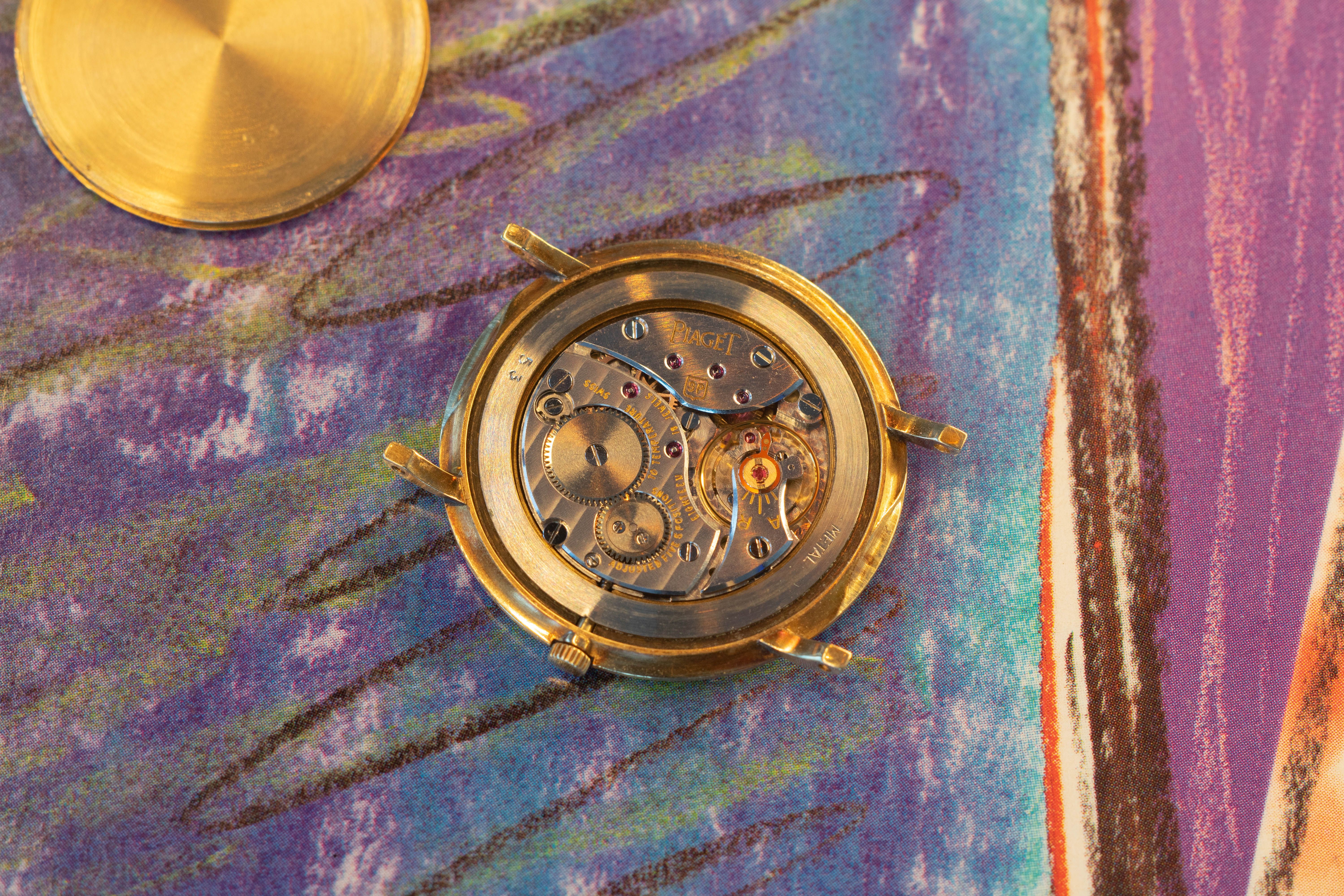 Al centro dell'orologio c'è il leggendario movimento 9P, uno dei calibro a carica manuale più sottili mai prodotti e un traguardo tecnico che ha consolidato la reputazione di Piaget. Prima che i quadranti in pietra audaci e i design scultorei diventassero il marchio di fabbrica del brand nel mercato odierno, Piaget era definito da raffinatezza, sobrietà e un'incomparabile maestria nell'orologeria ultra-sottile.