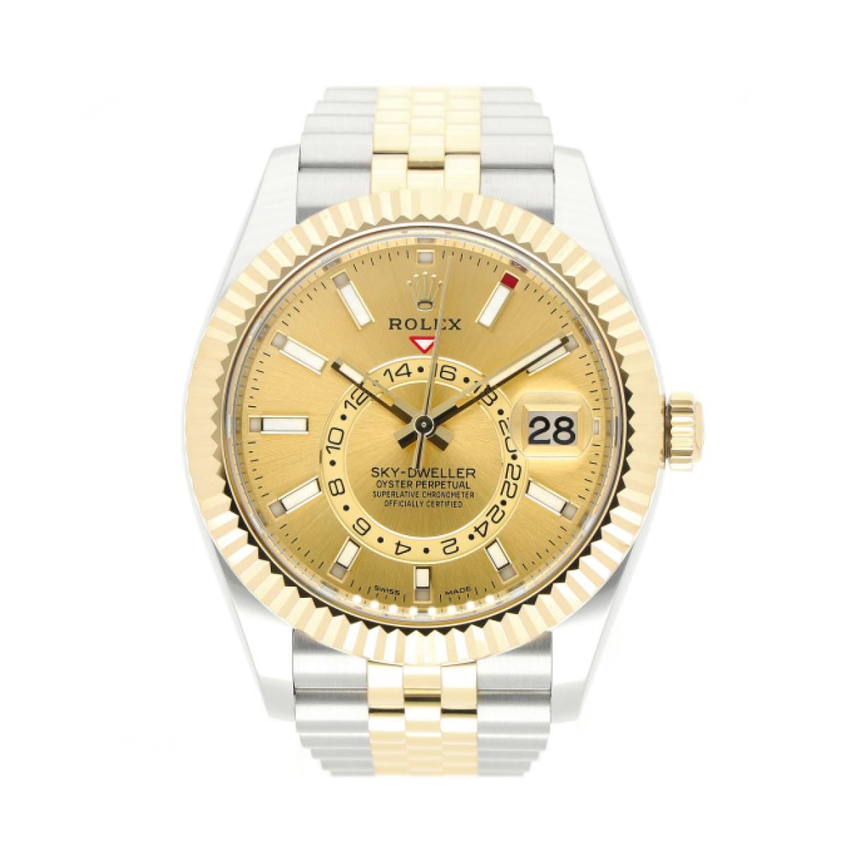 Rolex Skydweller del 2023 con cassa da 42 mm in oro/acciaio e chiusura pieghevole. Questo orologio da uomo Rolex è in ottime condizioni.