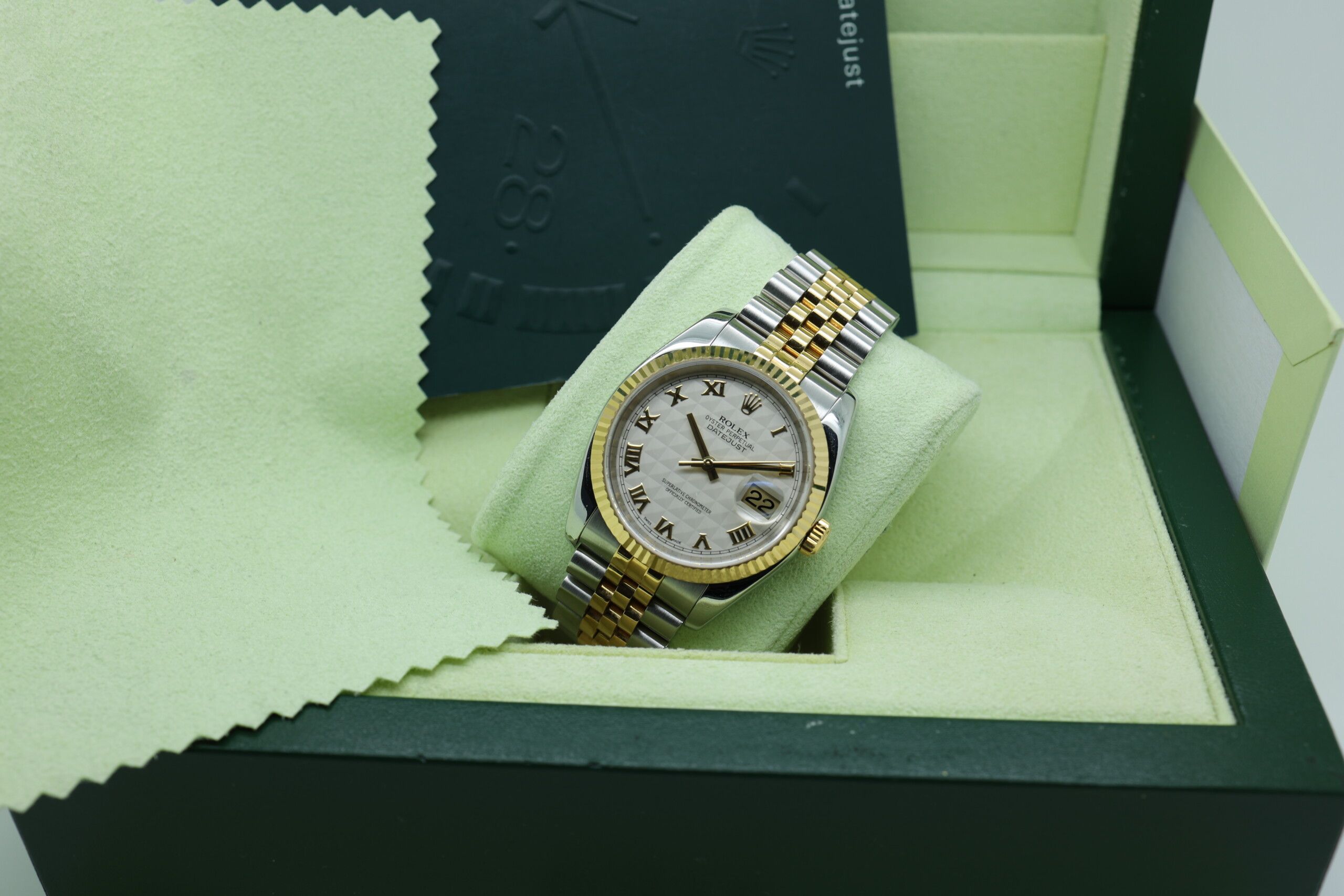 Questo pezzo è offerto come un set completo, inclusi scatola, documenti e accessori — un'ottima opportunità per i collezionisti in cerca di un Datejust distintivo e ben conservato con una configurazione del quadrante unica.