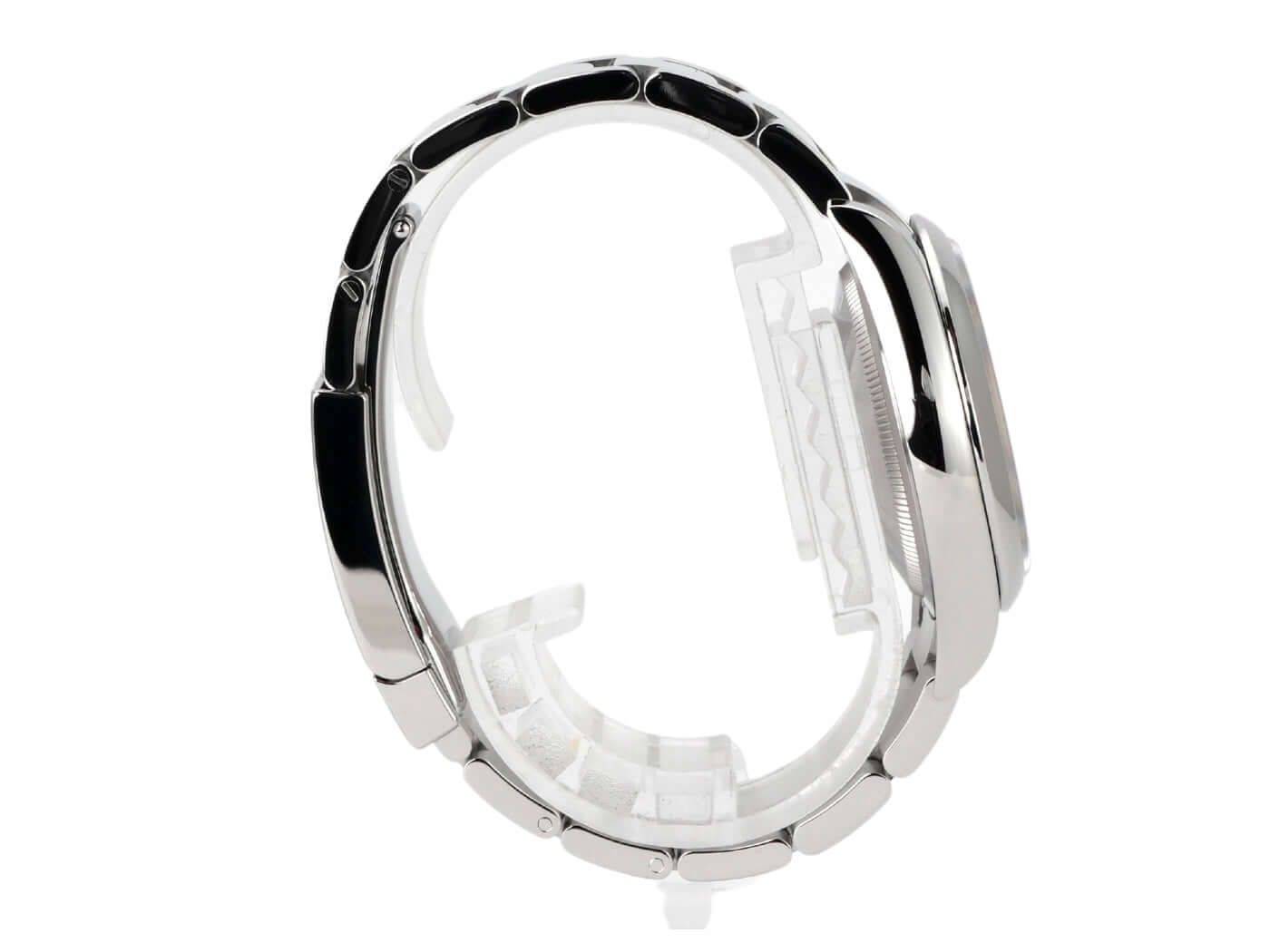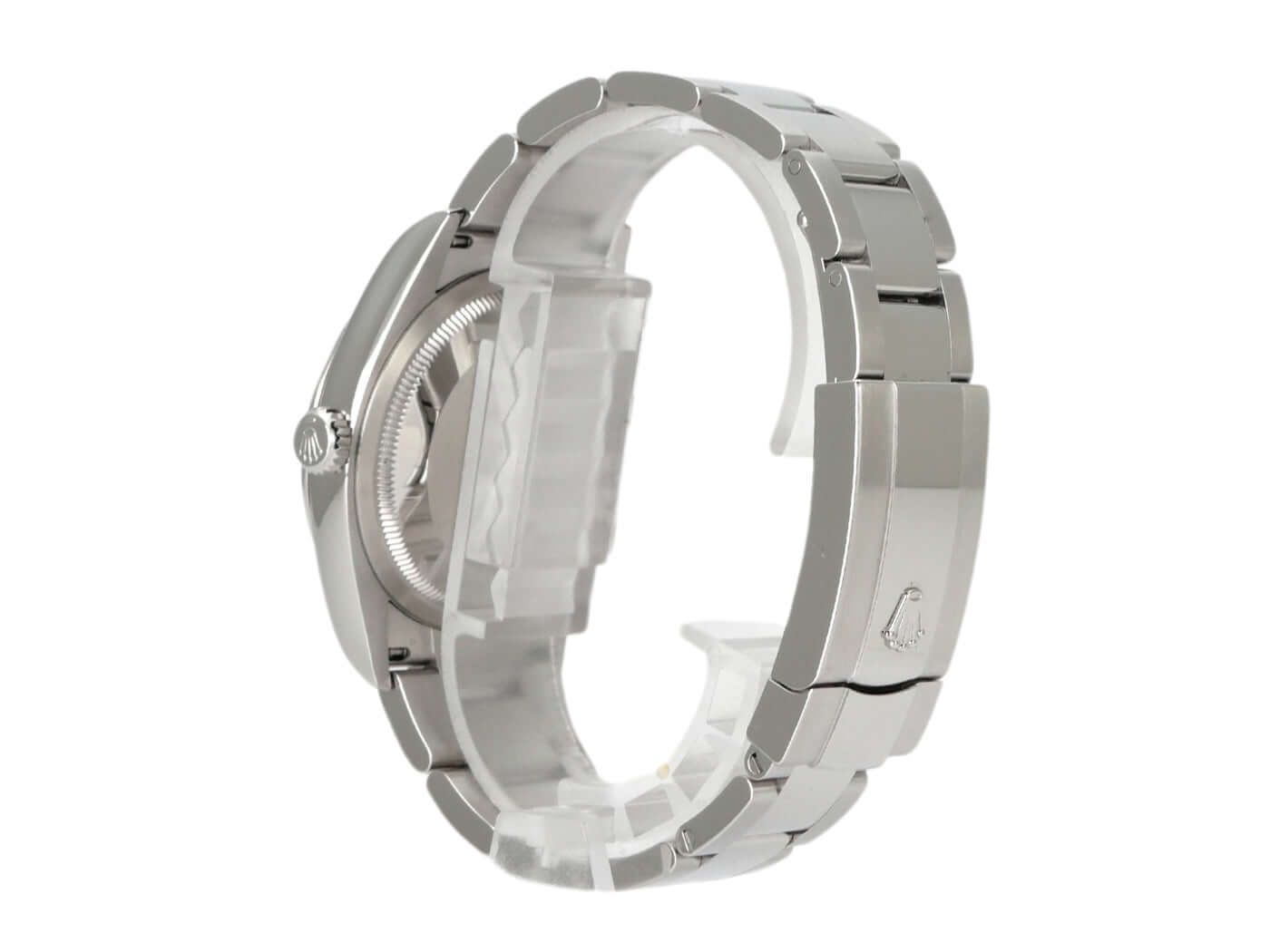 Cassa in acciaio Oystersteel lucidato e satinato, diametro della cassa 36 mm, quadrante argentato con indici luminosi applicati, lancette luminescenti, bracciale in acciaio Oyster con chiusura pieghevole, automatico, calibro di manifattura Rolex 3235, riserva di carica di 70 ore, indicazione della data, cronometro, vetro zaffiro, corona a vite, fondo cassa in acciaio avvitato, impermeabile fino a 10 bar.
