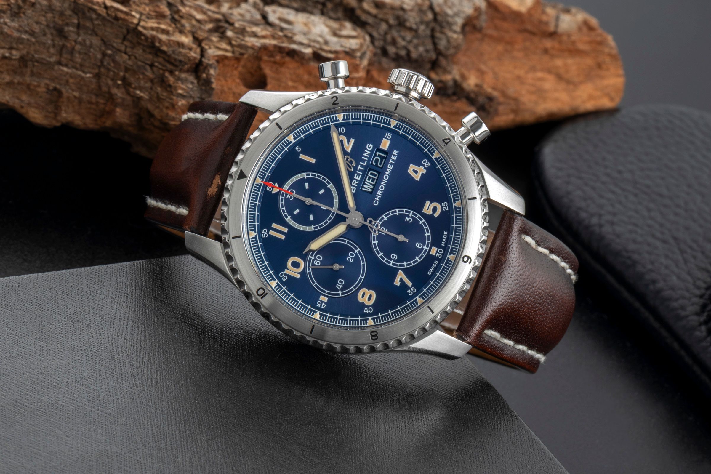 Alternative title: Breitling A13316101C1X2 Aviator 8 Chronograph 43 Stainless Steel / Blue / Calf / Pin; Breitling Aviator 8 Chronograph Stahl Automatik Herrenuhr Ref. A13316101C1X2 B&P [2506760]