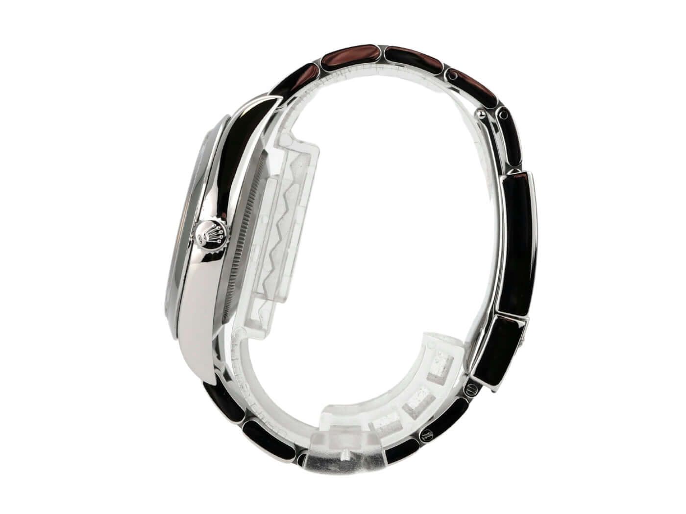 Cassa in acciaio inossidabile lucido e satinato, diametro della cassa 39 mm, altezza della cassa 11,4 mm, lunetta in acciaio inossidabile lucido, bracciale Oyster in acciaio inossidabile lucido e satinato con chiusura pieghevole, quadrante nero con numeri arabi applicati e indici luminosi, movimento automatico, calibro di manifattura Rolex 3132 con 31 rubini, frequenza 28.800 A/h, cronometro, vetro zaffiro antigraffio, corona a vite, fondello della cassa in acciaio inossidabile avvitato, impermeabile fino a 10 bar.