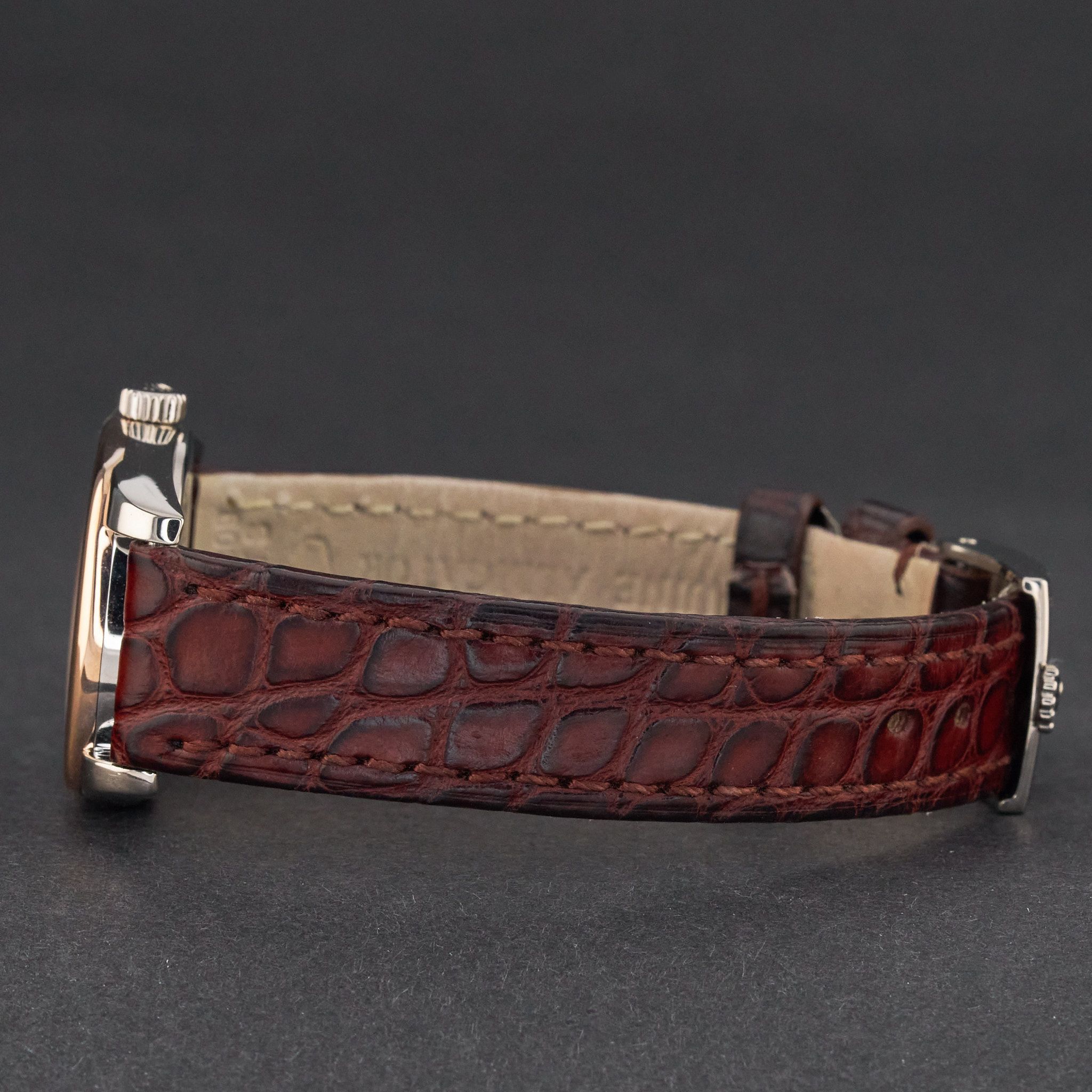 Questo Rolex Cellini Danaos 6229 presenta un quadrante nero con numeri arabi ed è realizzato in oro bianco 18K e oro rosa, con anno di produzione 2008.