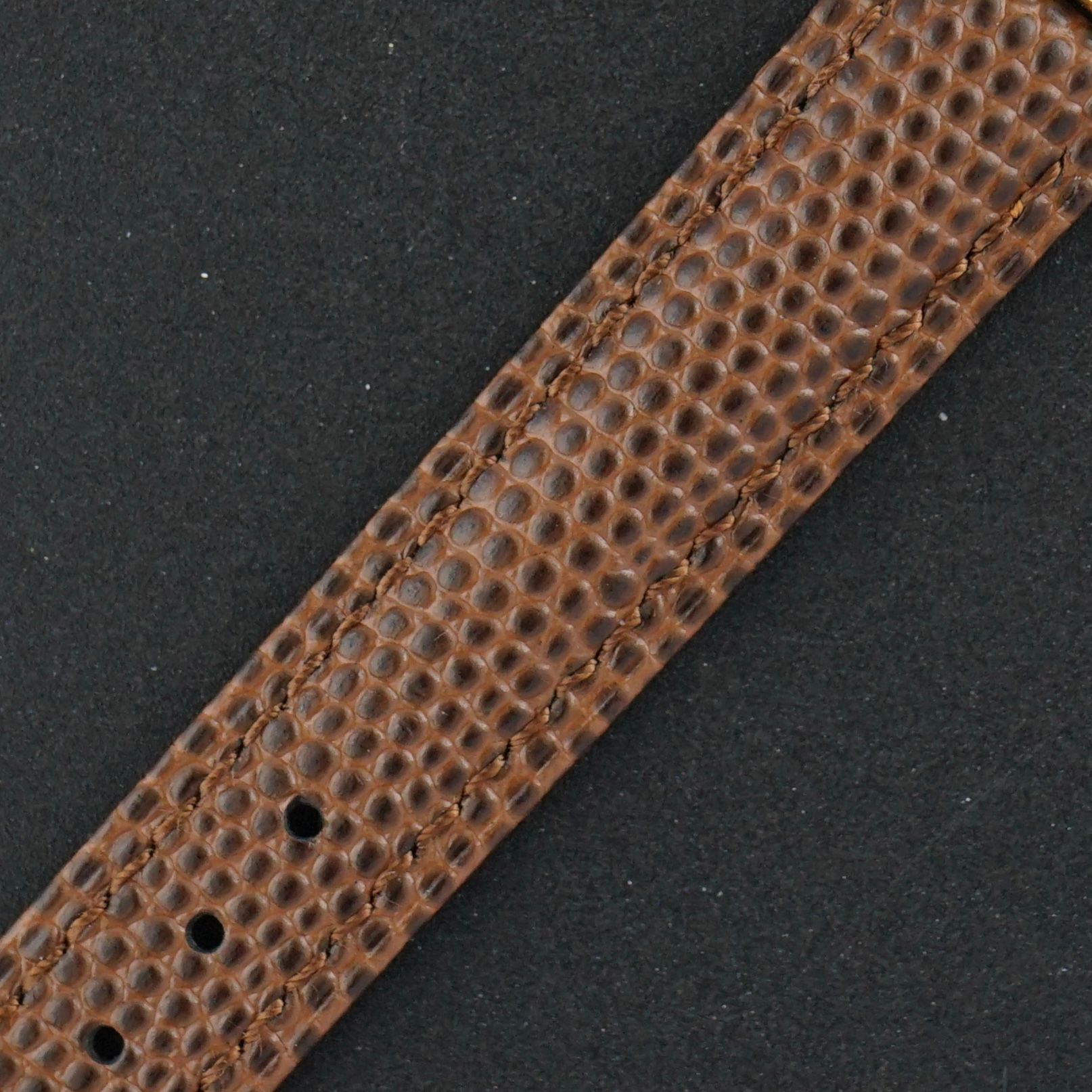 Cinturino: Un cinturino in pelle marrone con grana di lucertola. (Adatto per polsi da 11 a 19 cm)