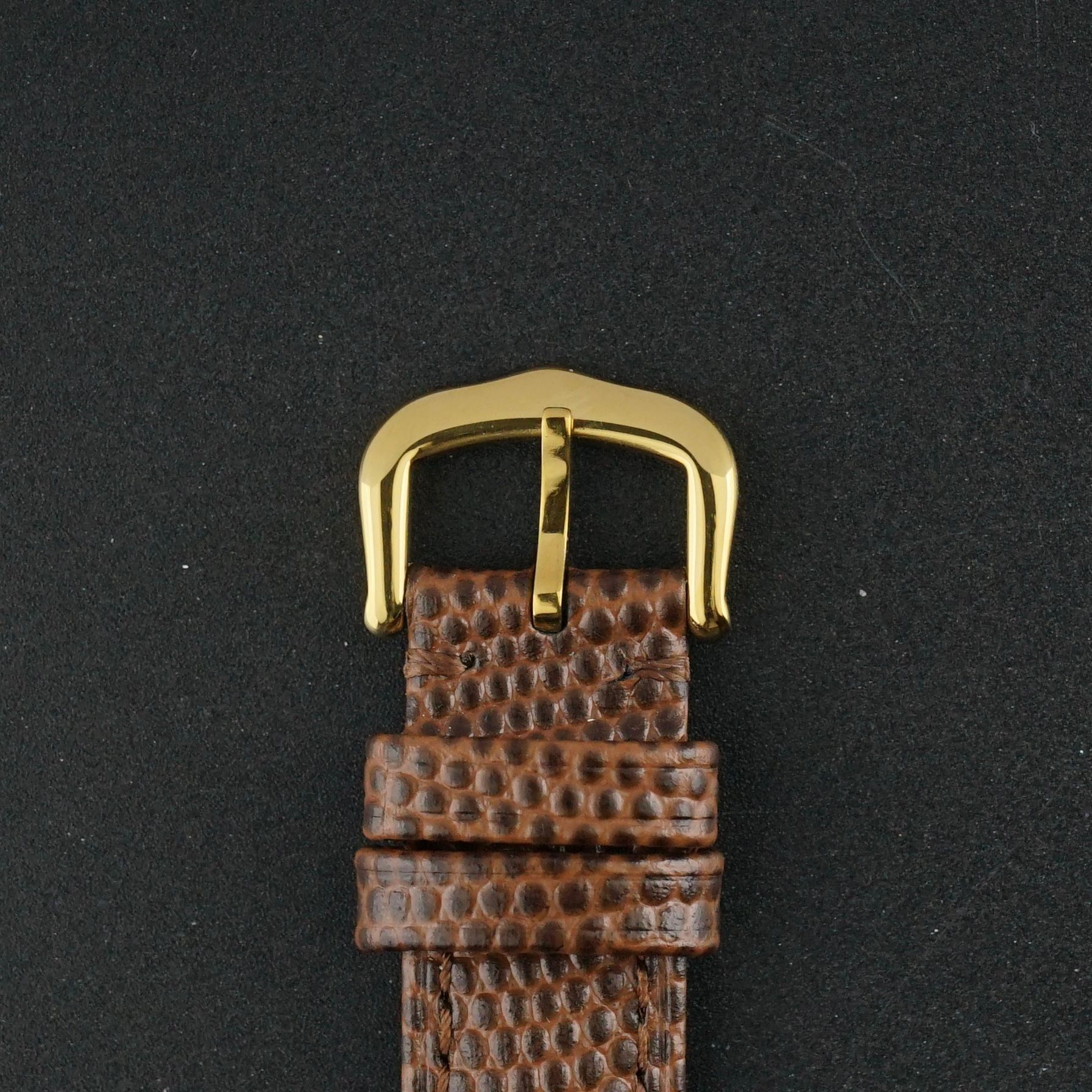 Strap: A brown leather strap with a lizard grain. (Fits a 11 to 19cm wrist)