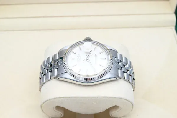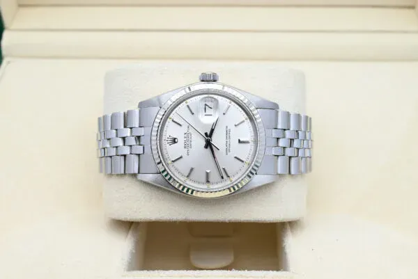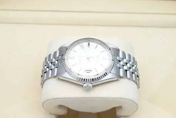 Rolex Datejust 36mm ref. 1601 del 1973 con quadrante argentato in eccellenti condizioni, completo di scatola e documenti originali. Tutti i nostri orologi sono stati accuratamente controllati dal nostro orologiaio e serviti quando necessario.
