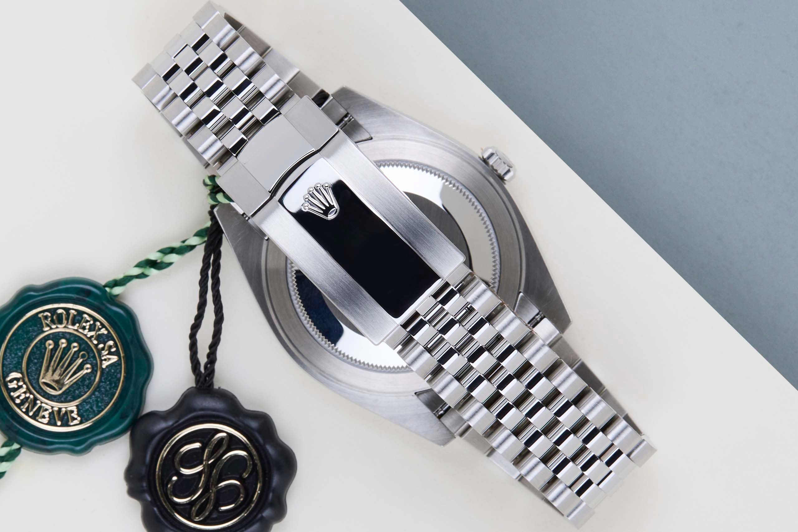 Questo Rolex Datejust 41 è in condizioni Mint e viene fornito con la scheda di garanzia originale Rolex e la scatola. Inoltre, l'orologio è coperto da garanzia internazionale Rolex fino a Novembre 2029.