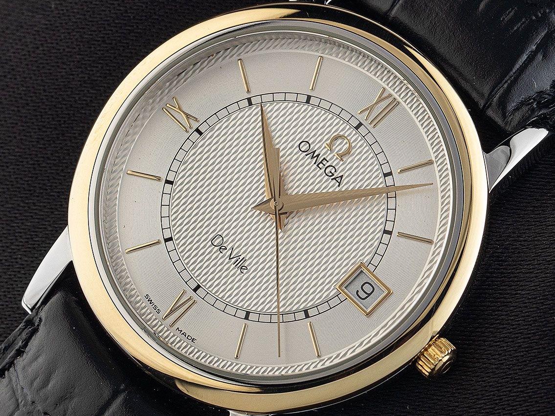 Omega De Ville Acciaio Oro Giallo Quarzo Cinturino in Pelle