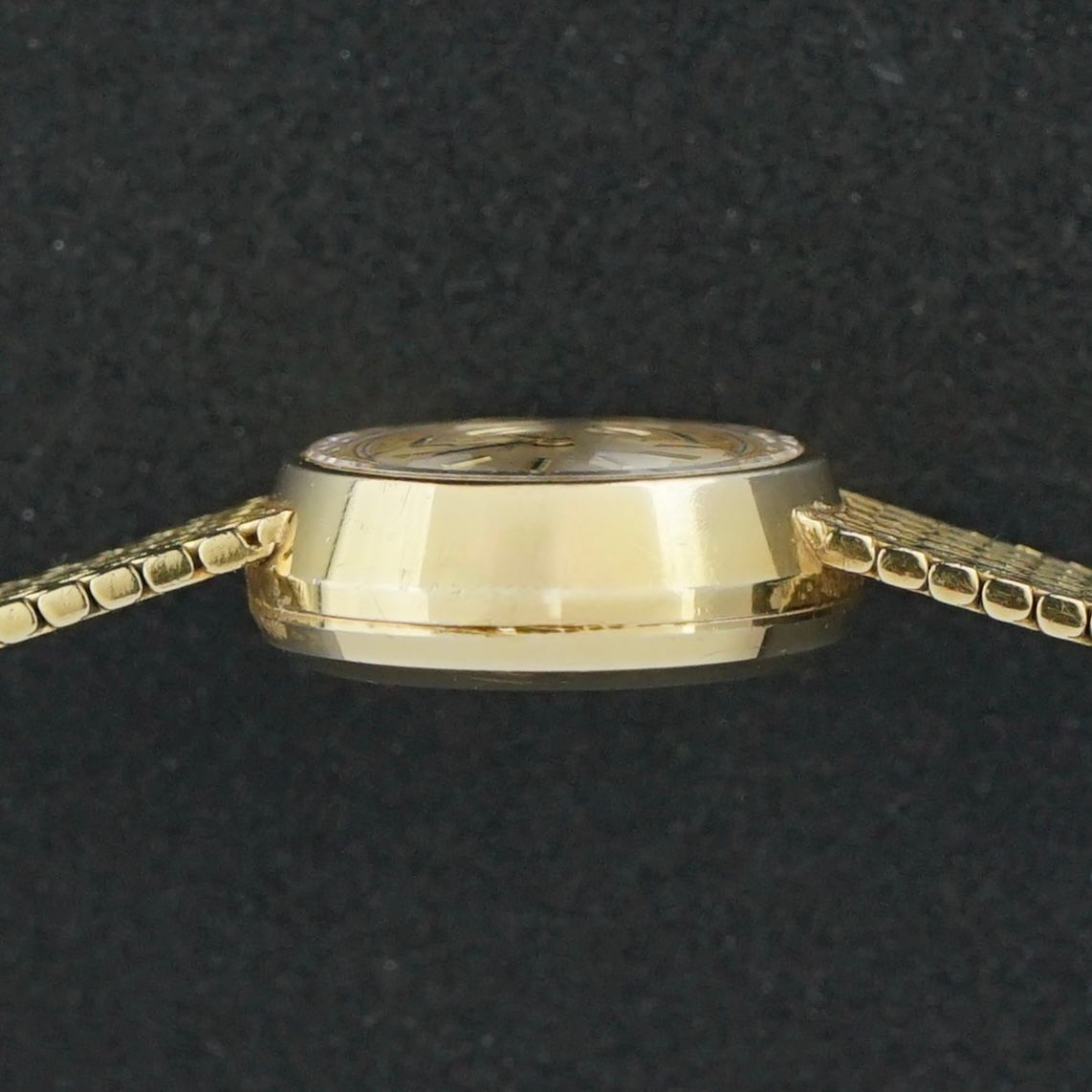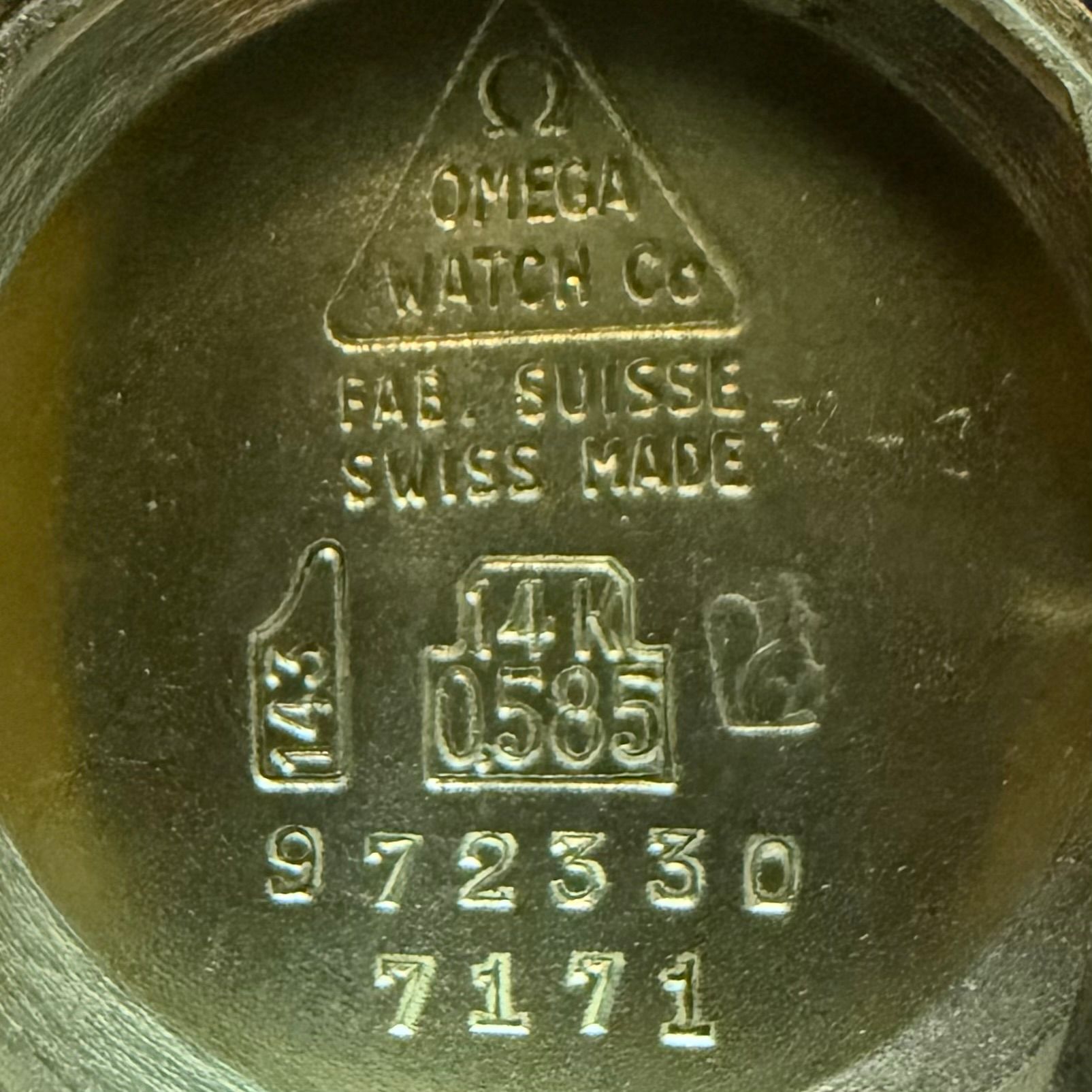 Questo bellissimo Omega vintage del 1966, spesso chiamato orologio da cocktail, è stato progettato per il polso femminile. L'intera cassa e il bracciale sono realizzati in solido oro giallo 14 carati, con un peso totale dell'oro di 24,1 grammi. Mantiene il suo cristallo originale con un bordo sfaccettato e tagliato a diamante che brilla magnificamente alla luce.