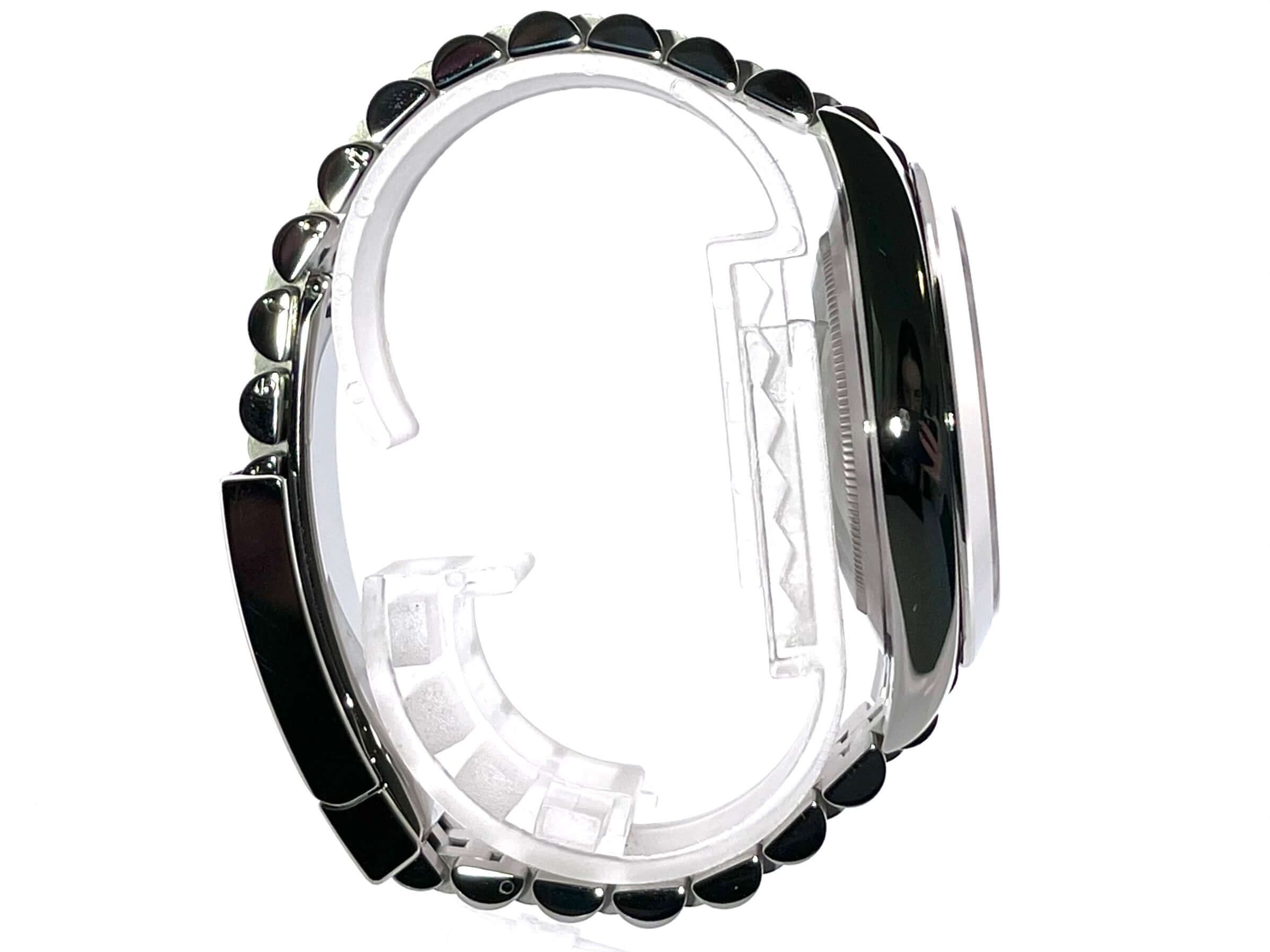 Cassa in acciaio inossidabile lucido e satinato, diametro della cassa 41 mm, lunetta in acciaio inossidabile lucido, bracciale Jubilee in acciaio inossidabile lucido e satinato con chiusura pieghevole, quadrante blu con numeri romani, movimento automatico, calibro Rolex 3235, riserva di carica di 70 ore, indicazione della data, cronometro, vetro zaffiro antigraffio, corona a vite, fondo cassa in acciaio inossidabile avvitato, impermeabile fino a 10 bar.