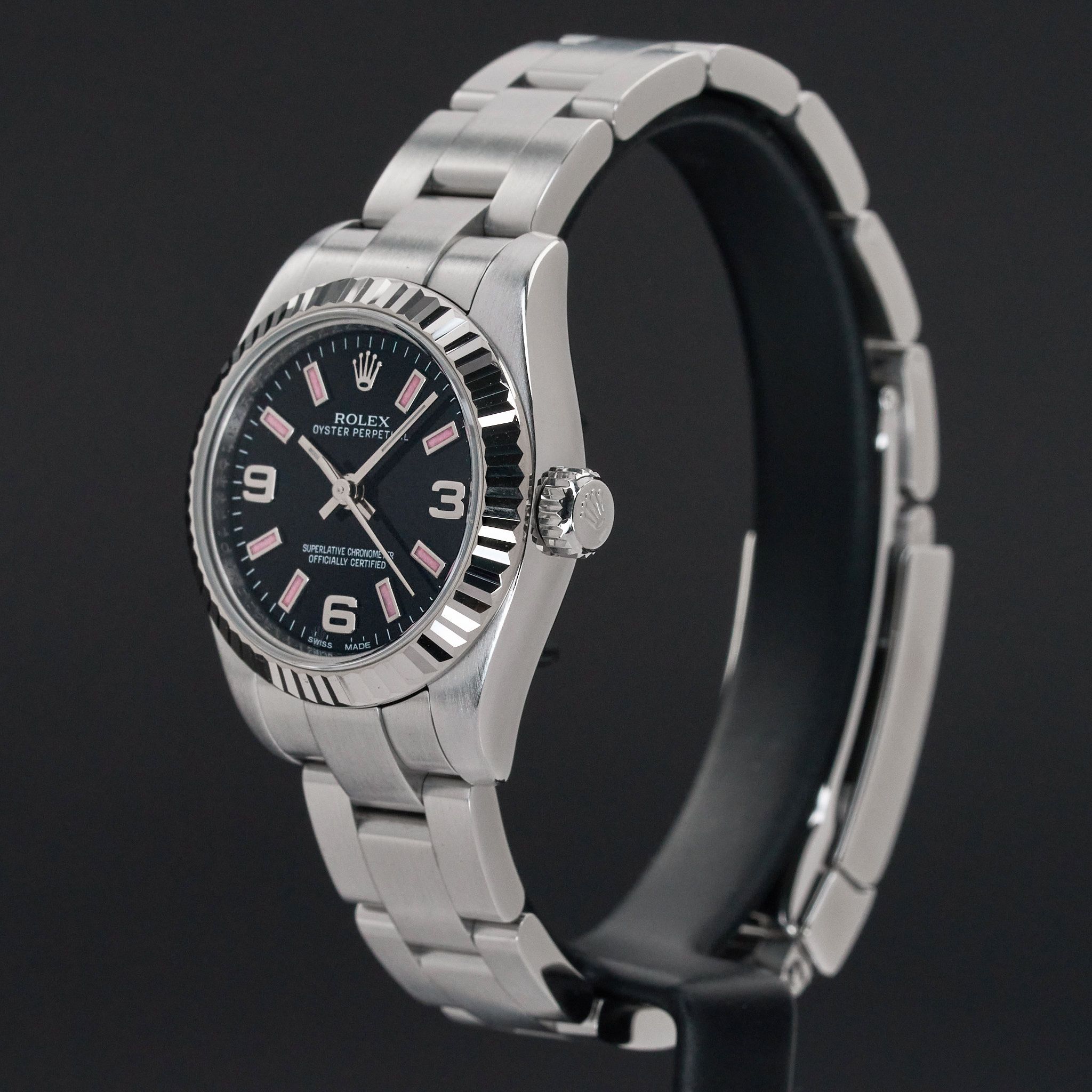 This Rolex Oyster Perpetual Lady 176234 features a Black Arabic dial and is crafted from stainless steel, with a production year of 2013.Case No: 362QXXXX