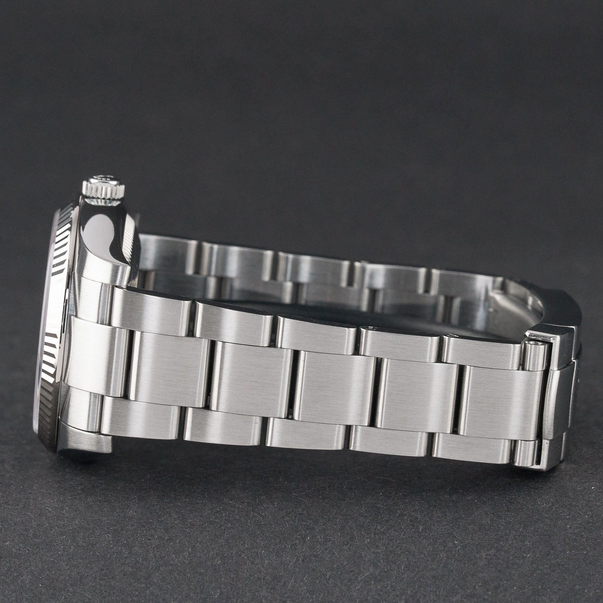 This Rolex Air-King 114234 features a Silver Arabic dial and is crafted from stainless steel, with a production year of 2008.Case No: M71XXXX