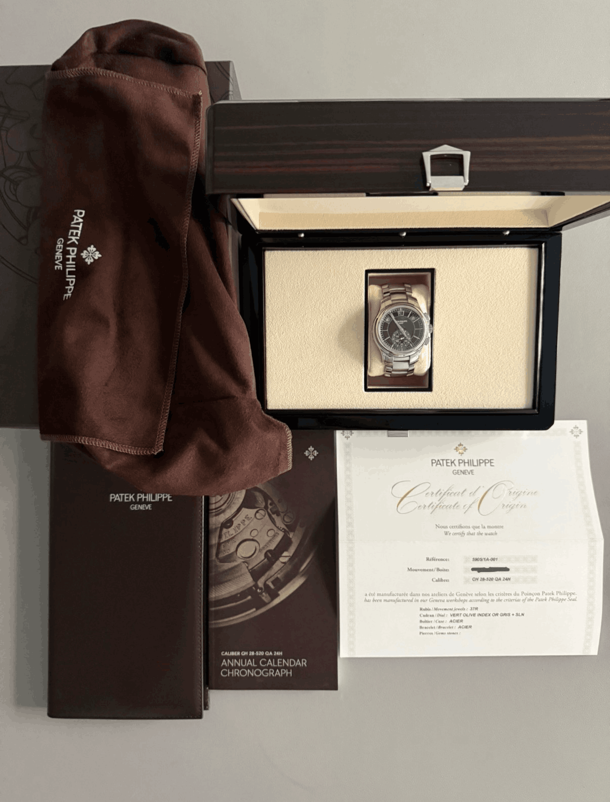Patek Philippe Annual Calendar Chronograph Complications Consegna austriaca come nuovo Quadrante verde