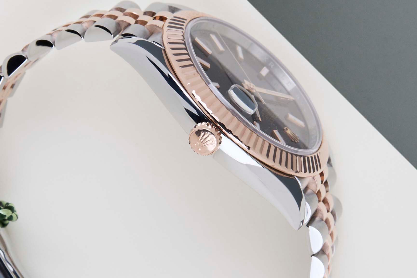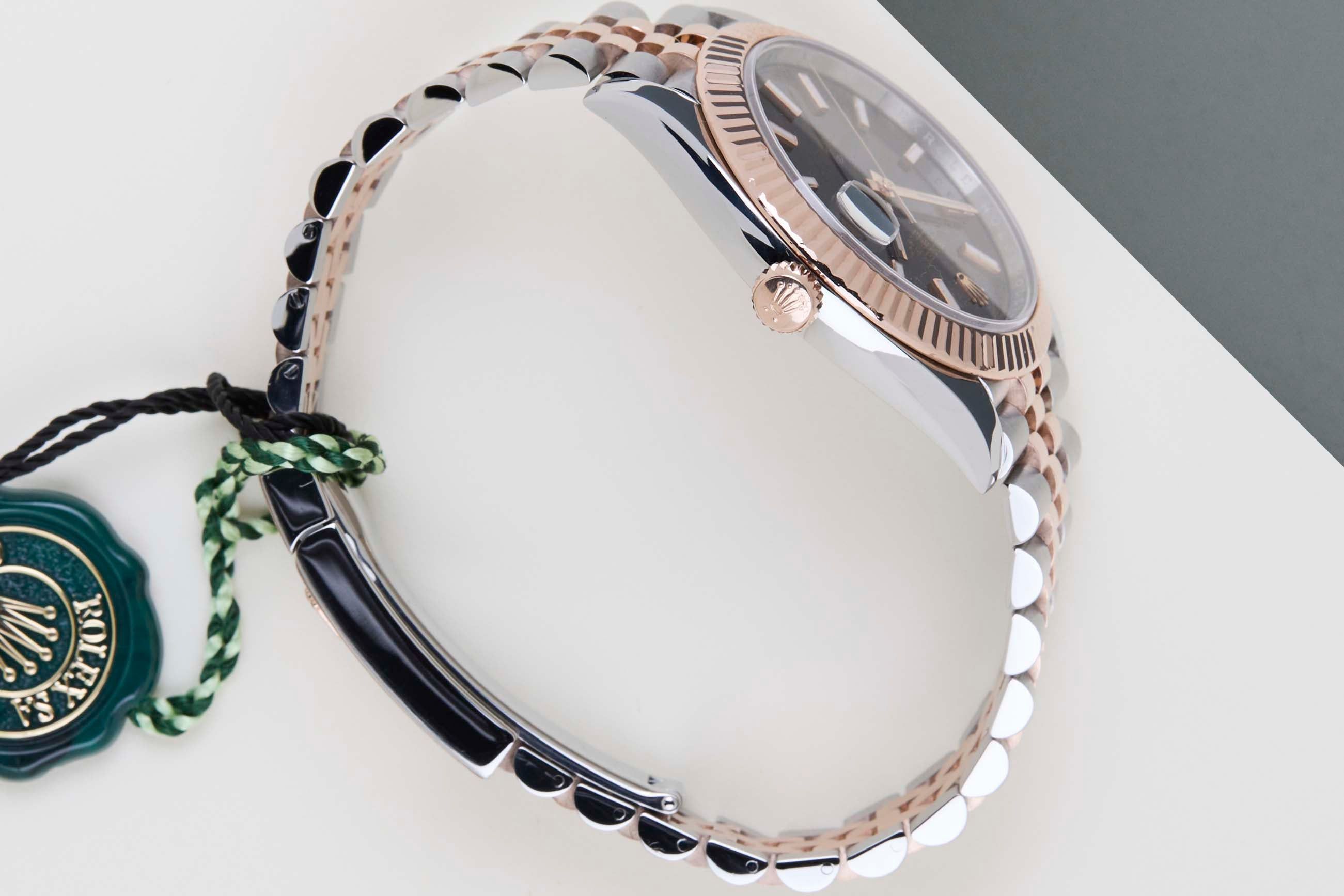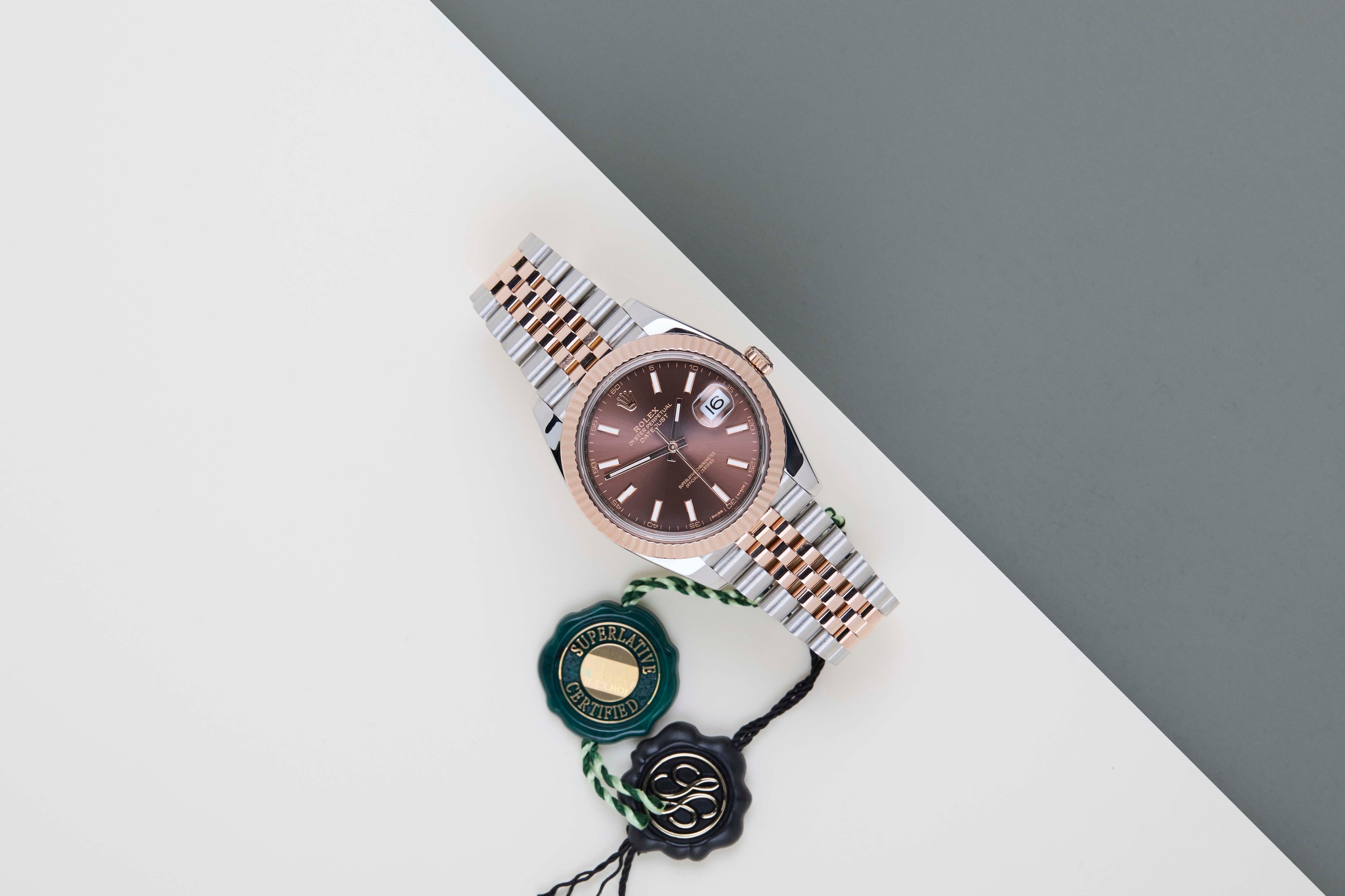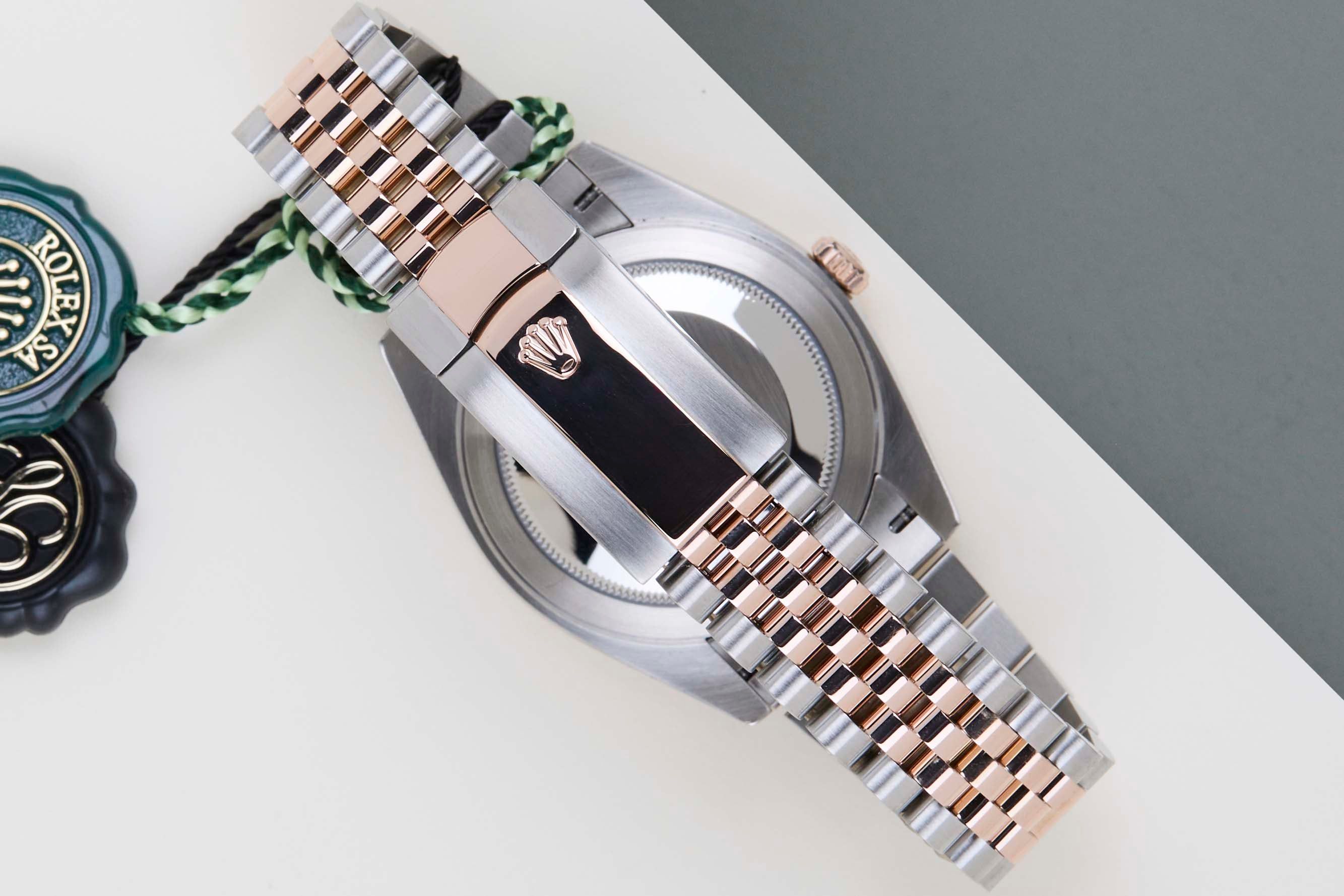 Rolex introduced the original Datejust in 1945 to celebrate the company's 40th anniversary. Due to the various case sizes and materials, the Datejust has been ingrained in Rolex's history and remains incredibly popular for 75 years.This Rolex Datejust 41 'Chocolate Dial - Jubilee' was sold for the first time in August 2018.This Datejust is made of a combination of 18k Rose Gold and stainless steel and is fitted with a Jubilee bracelet, which is equipped with the Easylink. This extension, allows the wearer to either extend or shorten the bracelet by 5 millimeters, improving the wearability and usability of the watch.This Rolex Datejust 41 is in Mint Condition and comes with the original Rolex Warranty Card and box. Furthermore, the watch has been serviced by our watchmakers and therefore has One Year of Steiner Warranty.