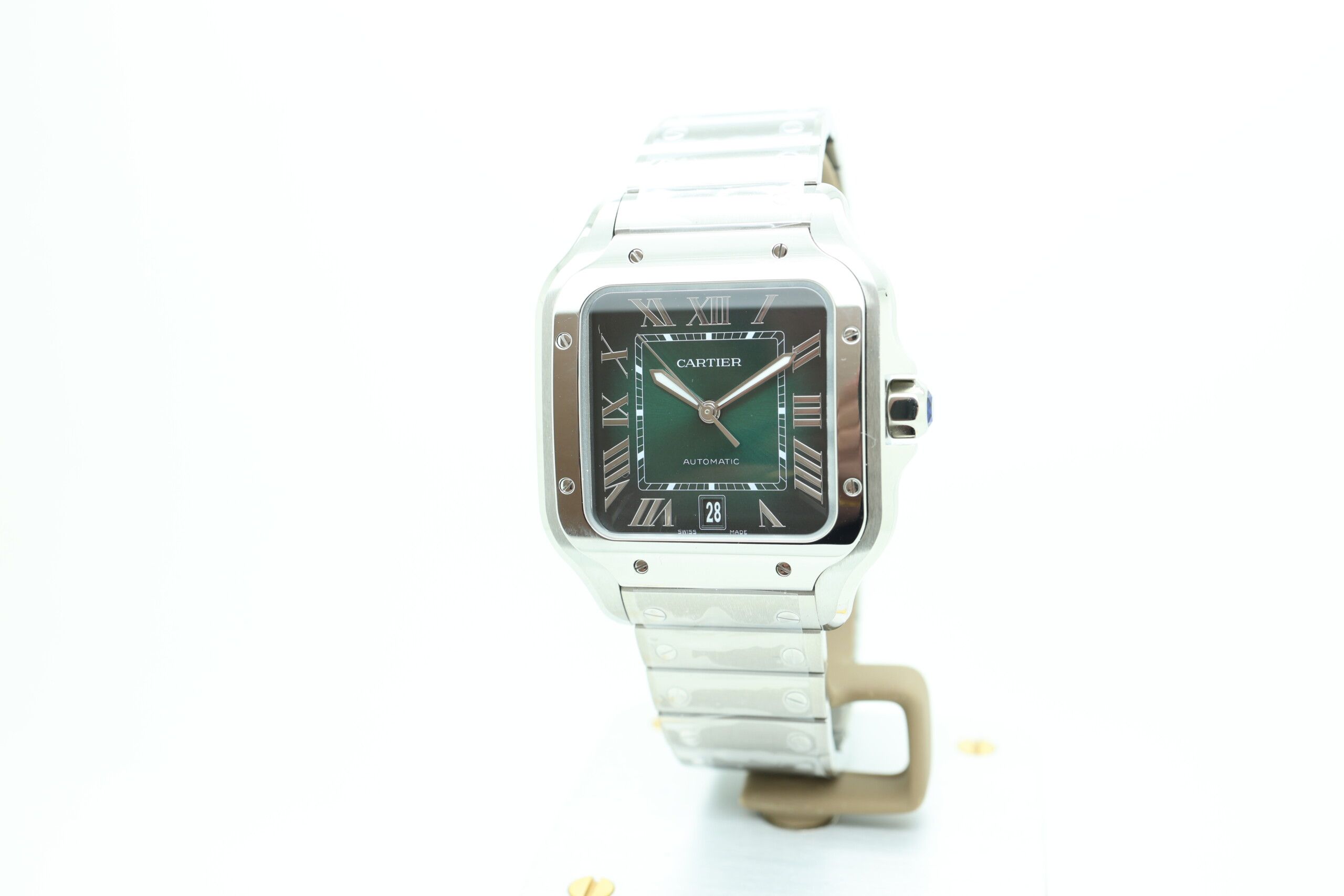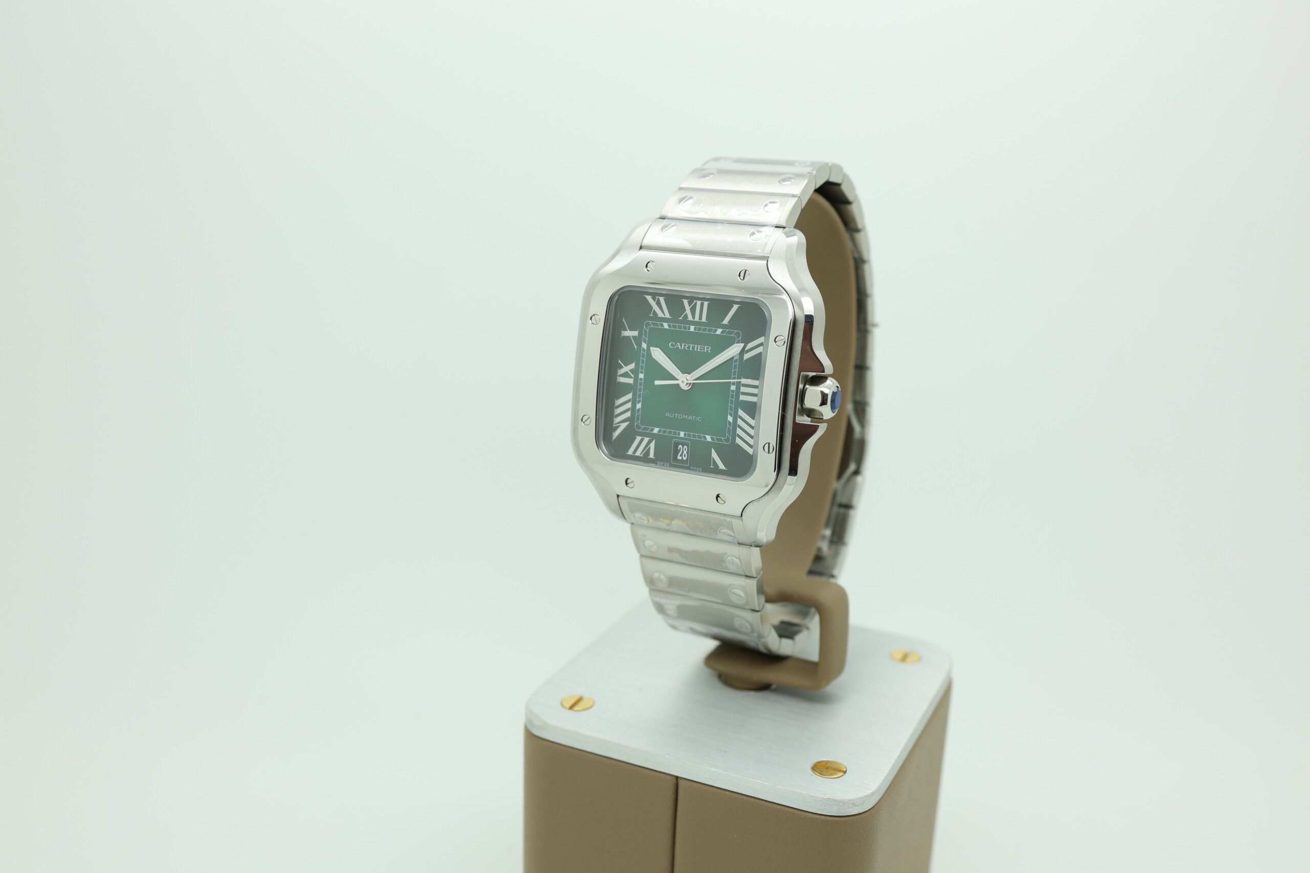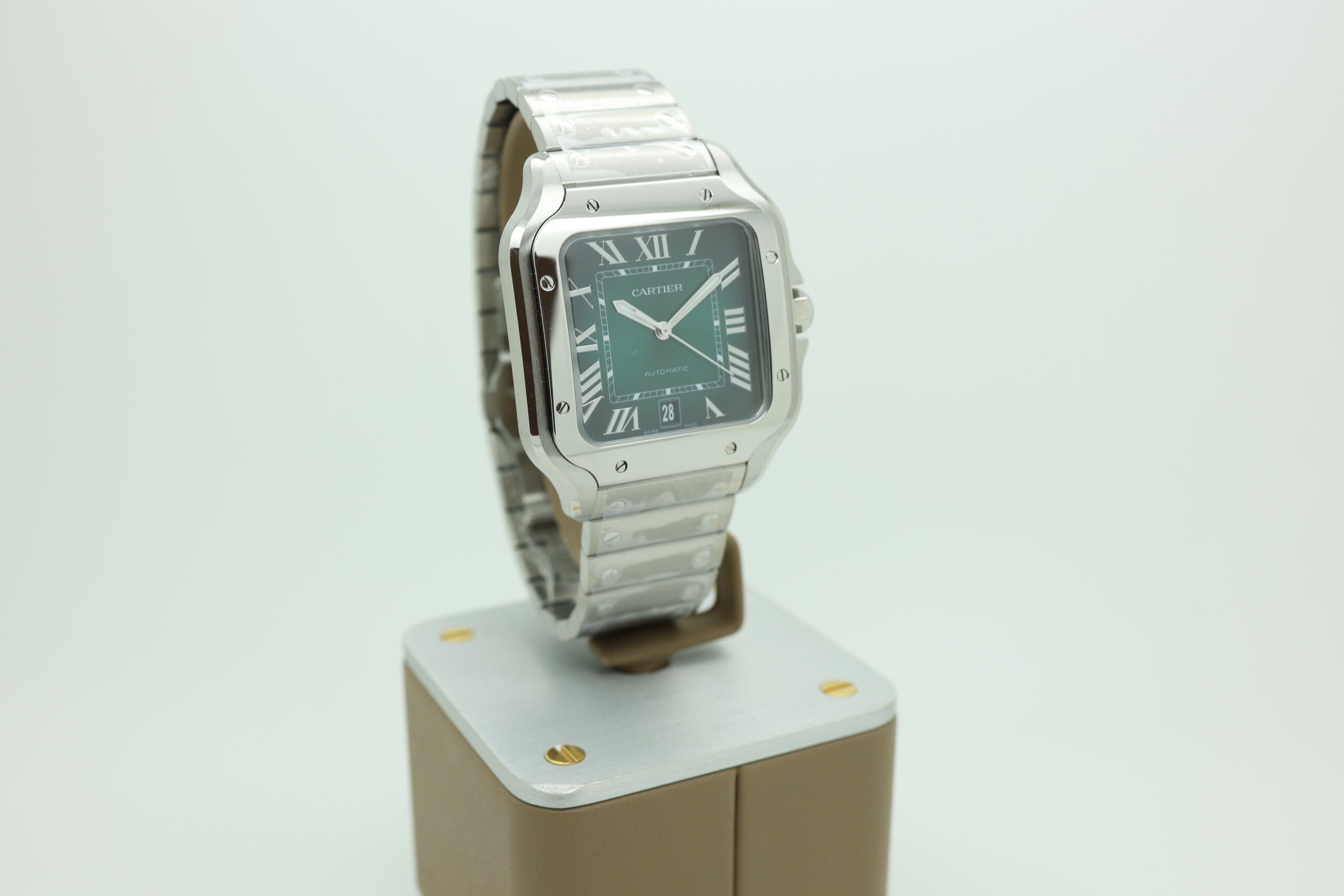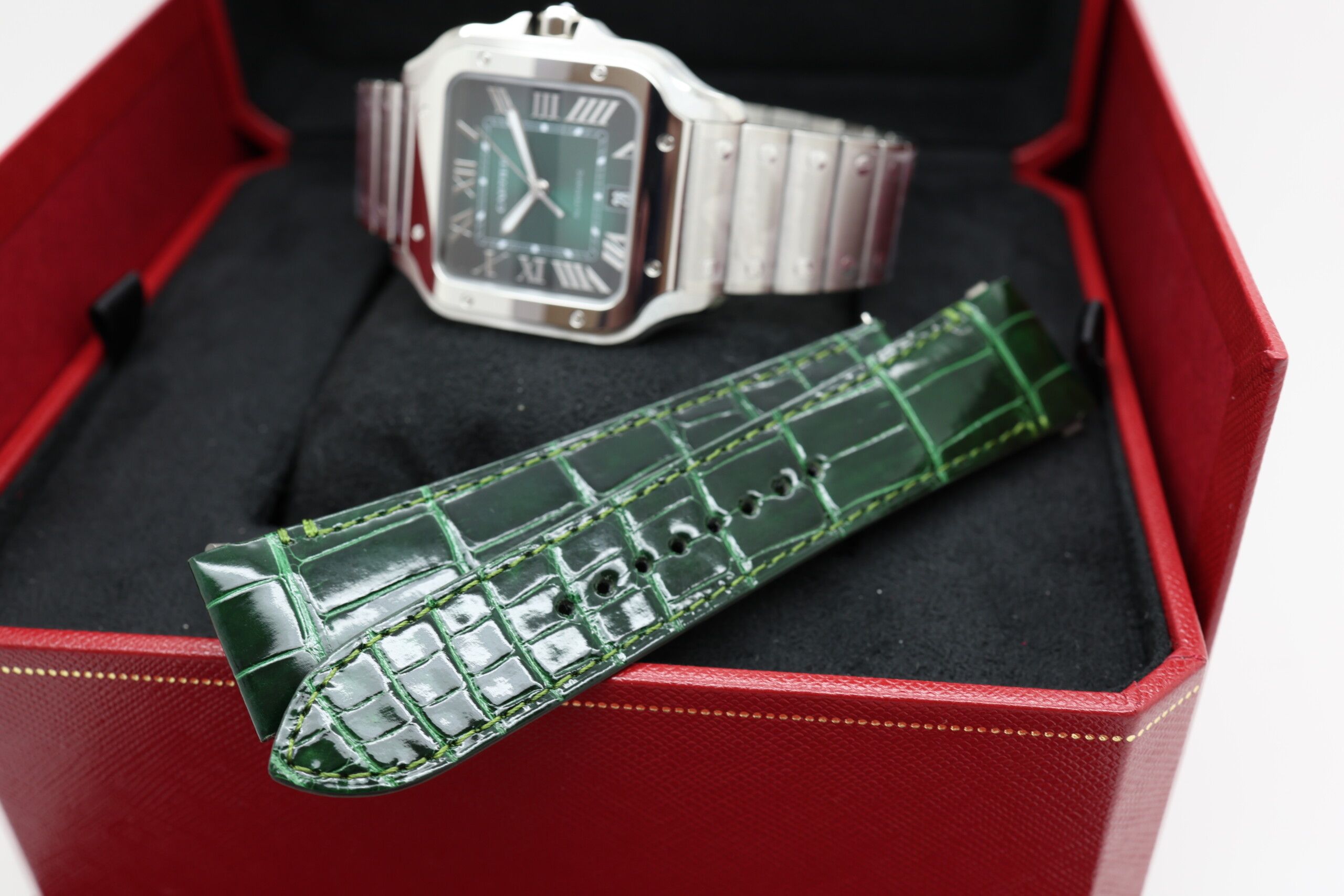 Fun fact: The green dial is one of the most coveted Santos variations, as it’s produced in limited numbers, making it a favorite among collectors looking for something a little more daring.