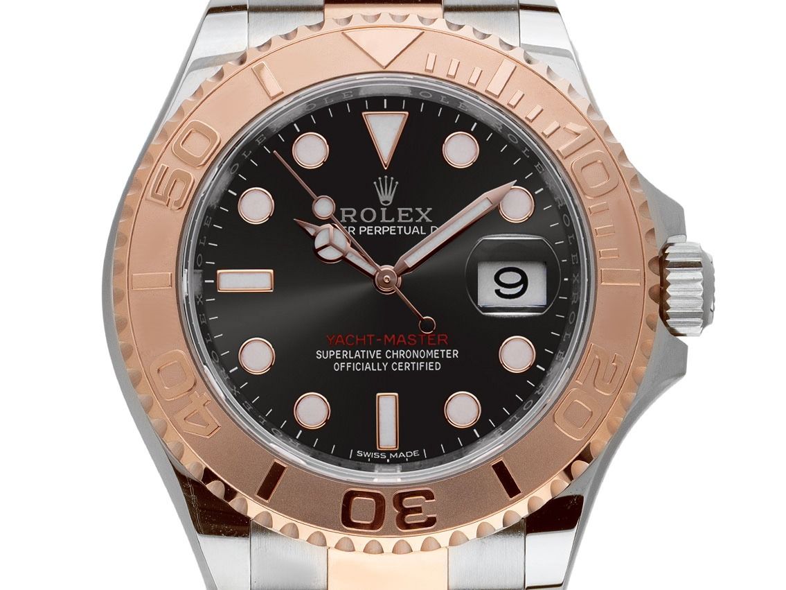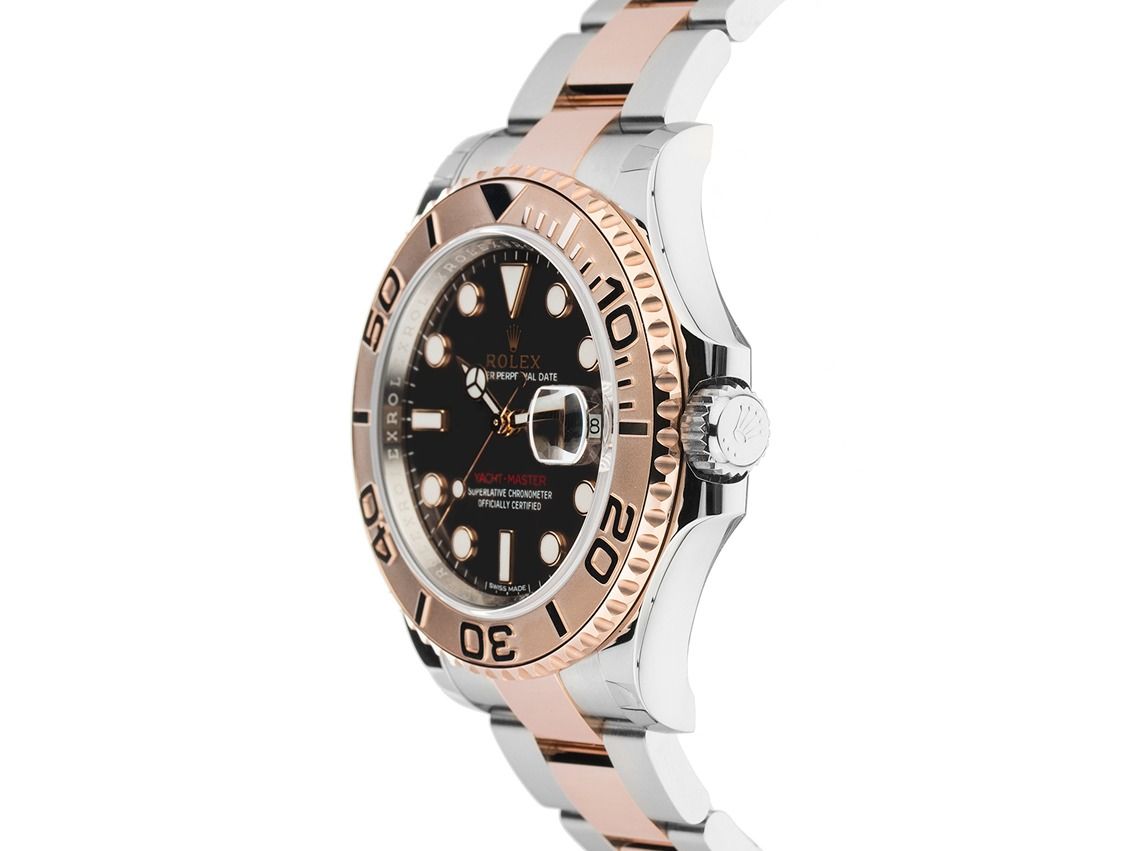 Rolex Yacht-Master Stahl 18kt Roségold Everose Schwarz Automatik Armband OysterGehäuse Edelstahl poliert, Gehäusedurchmesser ohne Krone 40mm, Gehäusehöhe 11,3mm. Lünette 18kt Roségold Everose gerädelt mit 60-Minuten Relief Skala, beidseitig drehbar. Armband Oyster Edelstahl / 18kt Roségold Everose poliert und satiniert, Sicherheitsfaltschließe Edelstahl / 18kt Roségold Everose mit Hersteller-Logo. Zifferblatt schwarz mit in Roségold Everose gefassten Indexen und Punkten sowie roségoldenen Zeigern. Uhrwerk Automatik, Chronometer mit Zeugnis, Rolex Manufakturkaliber 3135 mit 31 Edelsteinen. Anzeige von Stunde, Minute und Sekunde über Zeiger aus der Mitte mit Sekundenstopp zur sekundengenauen Einstellung der Uhrzeit, Datumsanzeige mit Schnellverstellung unter Glaslupe bei 3 Uhr. Saphirglas kratzfest. Krone verschraubbar mit Flankenschutz und Hersteller-Logo. Boden Edelstahl verschraubt. Gewicht der Uhr inklusive Armband 154g, Länge des Armbandes inklusive Gehäuse 175mm. Referenznummer: 116621, Gehäusenummer: 157ATXXX, ID: P2516232000226H-16100, Artikelnummer: 10000084798. Mit Gangkontrolle und kompletter äußerlicher Aufarbeitung von Februar 2026. Original Rolex Box mit Umkarton und Garantie Papiere von Oktober 2018, LC 170 / Italy EU, sowie Beschreibung, Ledermäppchen, Rolex Chronometer-Siegel und Watchregister Auszug von Februar 2026, The Watch Register Zertifikat / ohne Eintrag (Internationale Datenbank für verlorene oder gestohlene Uhren), Full Set. Superschnäppchen, Kapitalanlage mit Wertsteigerungspotential, aus erster Hand, fast nicht getragen. Wie Neu. Lieferzeit sofort.