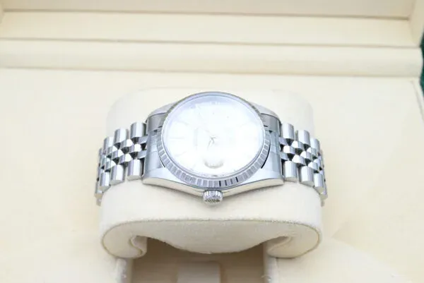 Rolex Datejust Ref. 16220 del 1998 con quadrante argentato in eccellenti condizioni, completa di scatola e documenti originali. Tutti i nostri orologi sono stati accuratamente controllati dal nostro orologiaio e serviti quando necessario.