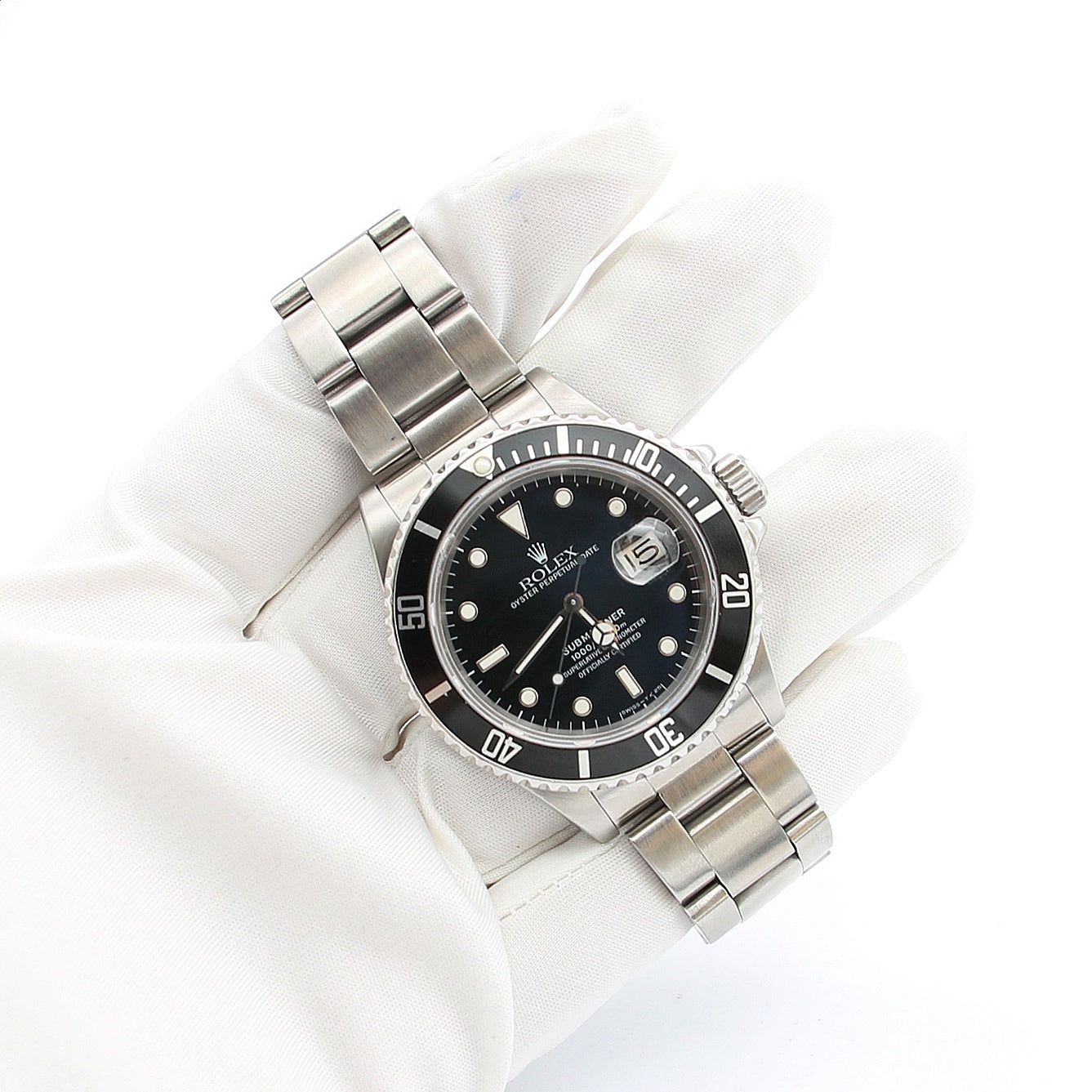 For sale at Debonar Watches: pre-owned Rolex Submariner 16800.Its 40mm case has an unidirectional timing bezel with markings for the first fifteen minutes and five-minute hash marks through the 60. During time, the Rolex Submariner 16800 has become a cult favorite among today’s collectors, offering a number of unmistakably vintage design elements in a highly wearable package that is more than capable of standing up to everyday wear and use. The reference 16800 was also the first Submariner to offer water resistance up to 300 meters, which remains the Submariner’s standard depth rating to this day. Since the Submariner was initially developed for professional divers, it did not have a date mechanism on the dial during its early production years, as there was no need for a calendar display while diving anyway. However, Rolex eventually added it to the series in the late 1960s as its popularity among collectors of all lifestyles and professions took off. The Submariner also initially featured a bi-directional 60-minute bezel and an acrylic crystal. The Submariner really started to transform into what would become the ref. 16800 around the late 1950s when the ref. 5512 hit the market sporting, for the first time in Submariner history, crown guards and a larger 40mm case. About a decade later, Rolex released the first Submariner with a date mechanism on the dial and an accompanying Cyclops magnifier on the crystal with the launch of the ref. 1680. The ref. 16800 was its immediate successor. BRAND ROLEX MODEL SUBMARINER REFERENCE 16800 CASE MATERIAL STEEL MOVEMENT AUTOMATIC DIMENSION 40 MM DIAL BLACK BEZEL STEEL CRYSTAL SAPPHIRE BRACELET TYPE OYSTER BRACELET MATERIAL STEEL BRACELET LENGHT 17 CM ORIGINAL BOX NO ORIGINAL PAPERS NO YEAR APPROX. THE '80s CONDITION VERY GOOD