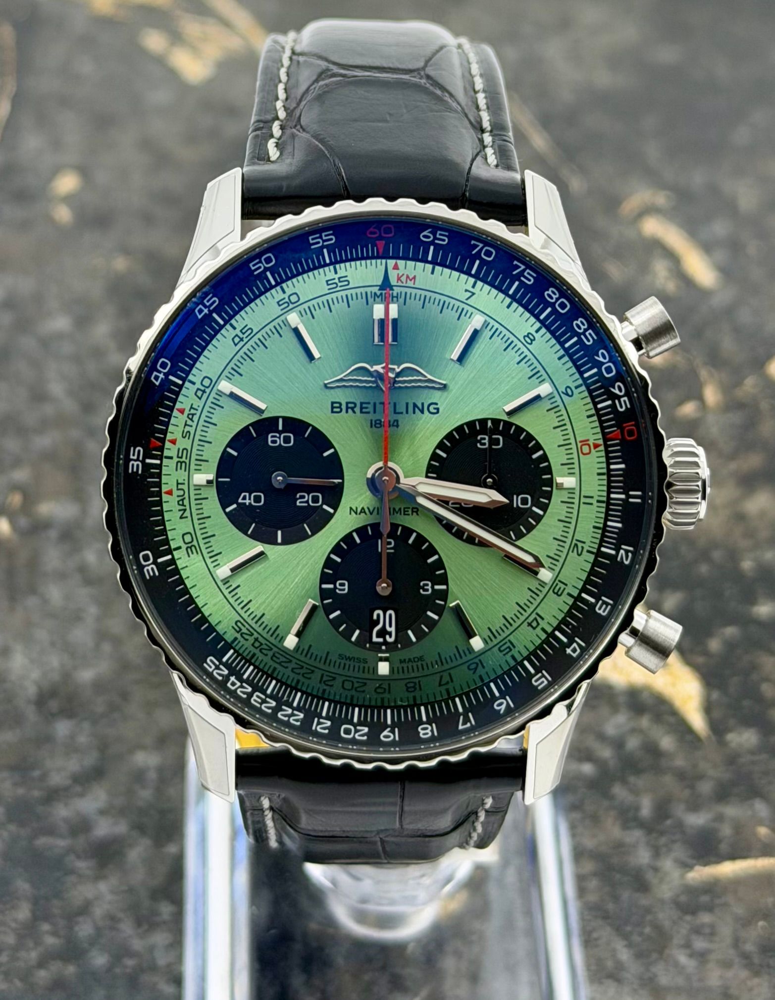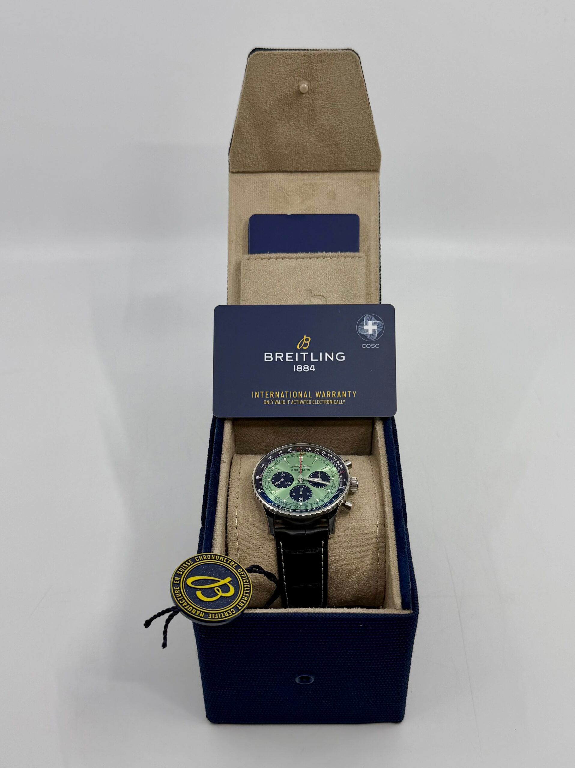 Breitling Navitimer 1 B01 Chronograph Breitling Navitimer B01 Chronograph 43mm - Mint Green Dial - Black Leather - AB0138241L1P1 - New 2026