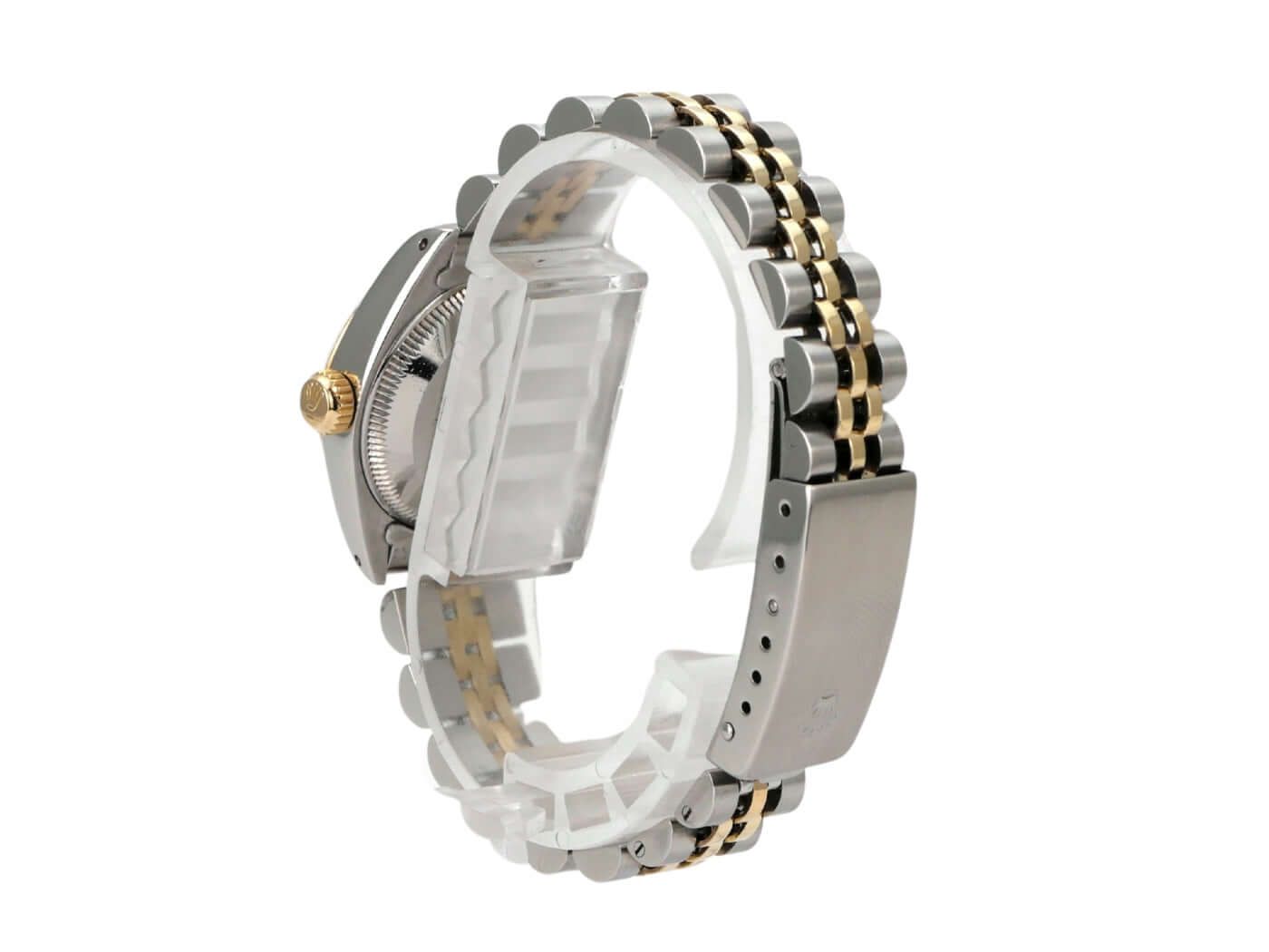 Rolex Datejust 26 Stainless Steel / Yellow Gold Ref. 6917 Purple from 1982Case made of polished and satin-finished stainless steel, diameter 26 mm, bezel made of 18 kt yellow gold with fluting, Jubilee stainless steel / 18 kt yellow gold bracelet polished and satin-finished with folding clasp, purple dial with applied hour markers, golden hands, self-winding movement, chronometer, Rolex manufacture caliber 2130 with 29 jewels, frequency 28,800 vibrations per hour, date display, scratch-resistant sapphire crystal, screw-down crown made of 18 kt yellow gold, screw-down stainless steel back, water-resistant up to 10 bar.Used watch, very good condition, complete with box and papers, delivered in 1982, serviced 02/2026.