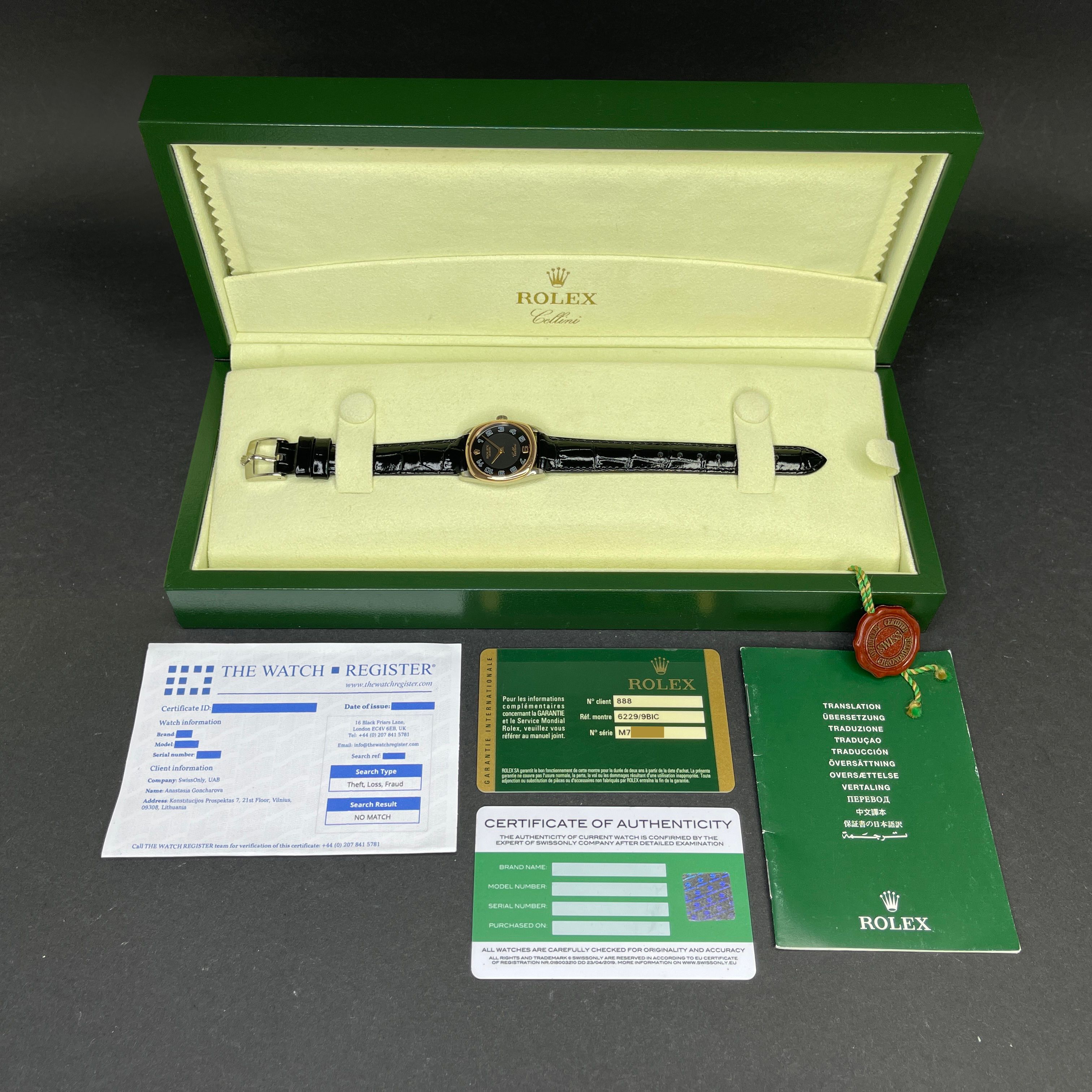 • Un Certificato di Ricerca del The Watch Register, entrambi legalmente riconosciuti come prova di diligenza.