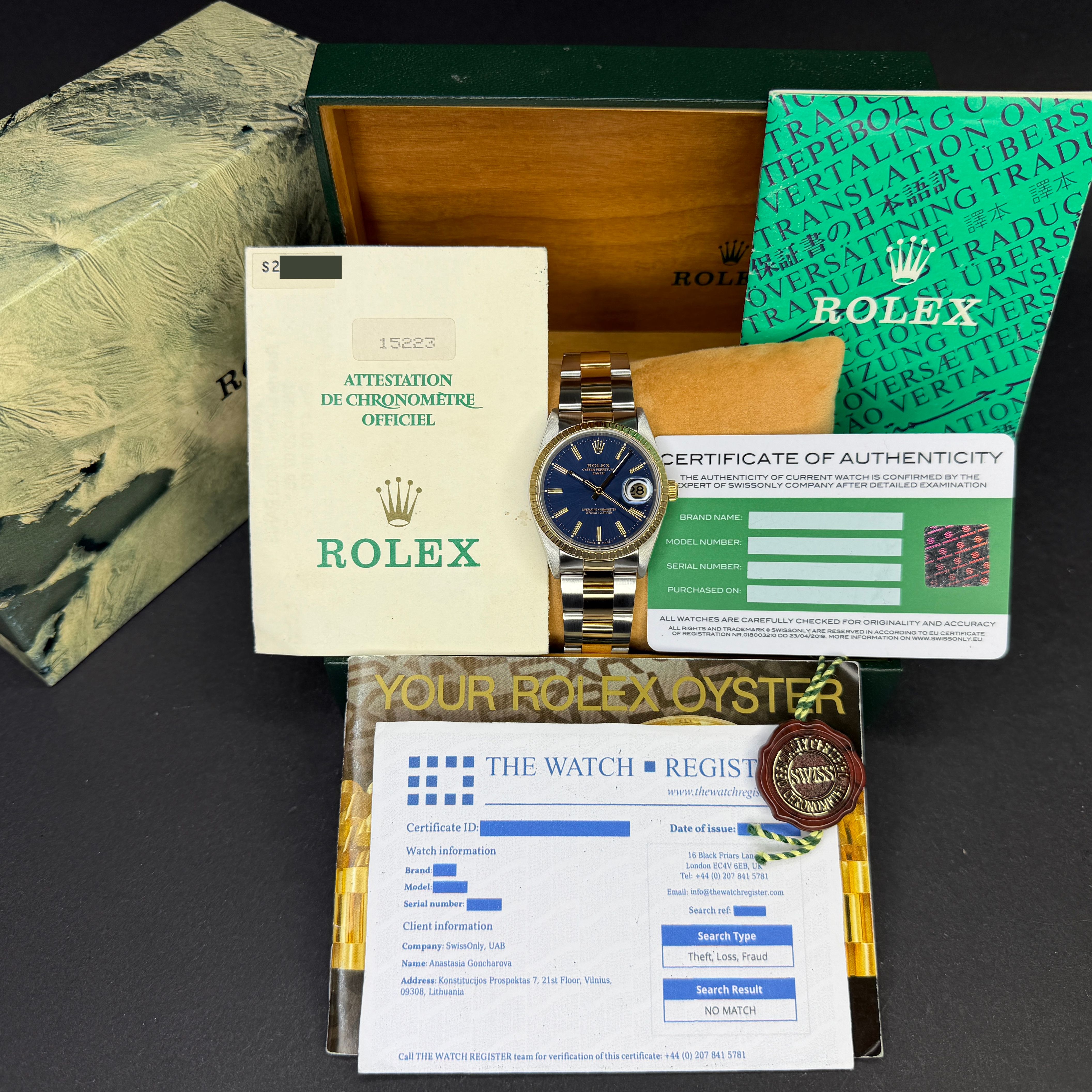 • Un Certificato di Ricerca del The Watch Register, entrambi legalmente riconosciuti come prova di diligenza.