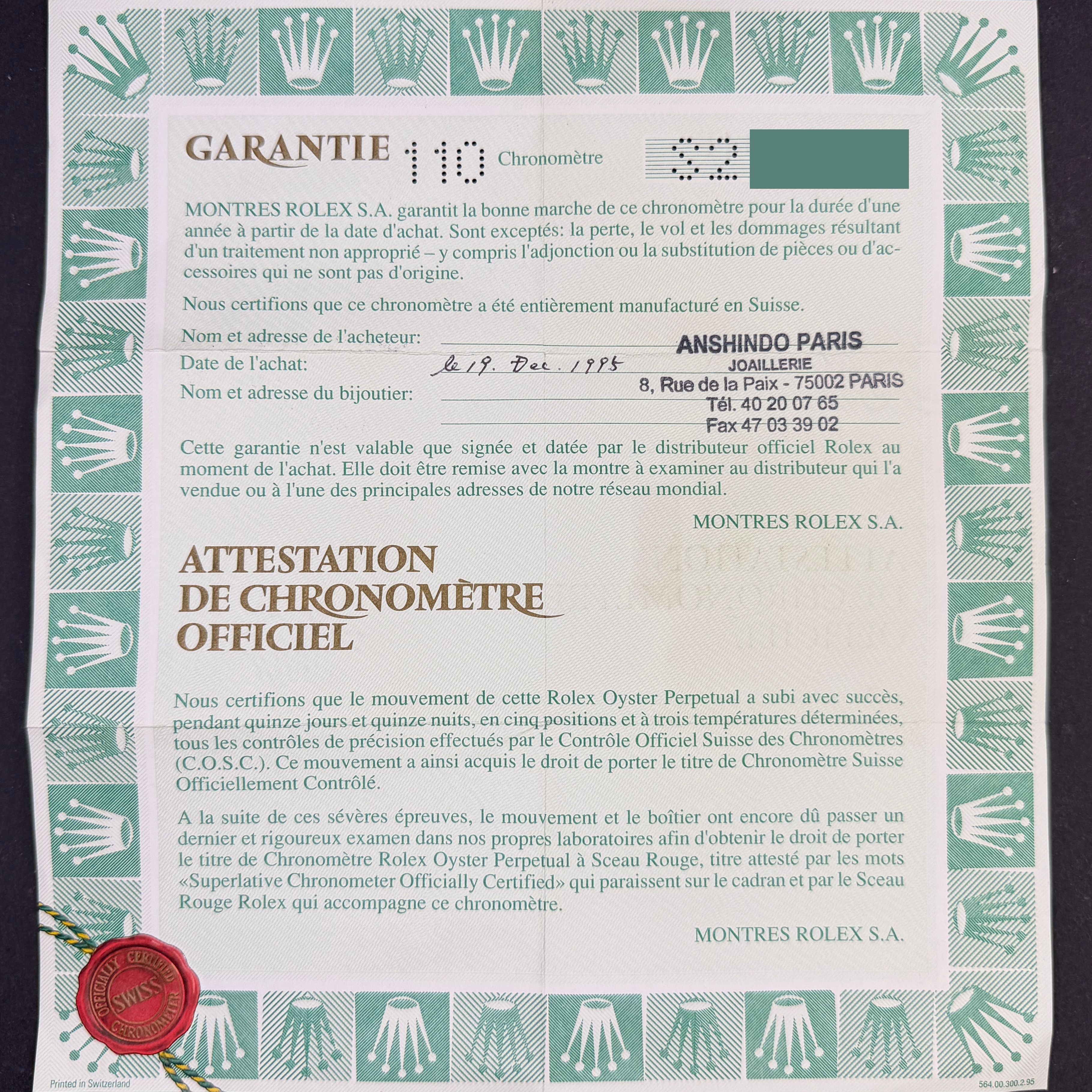 This Rolex Oyster Perpetual Date 15223 features a Blue dial and is crafted from 18K yellow gold and stainless steel, with a production year of 1993.Case No: S21XXXX